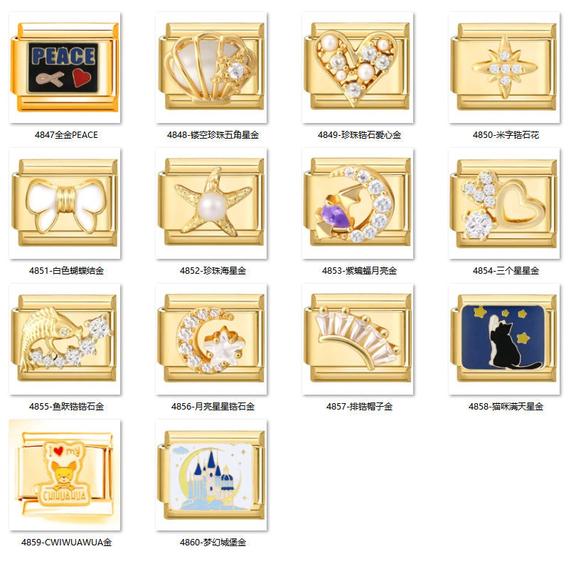 Wholesale Italian Charm Bracelet 9mm DIY Zircon Starfish Bat Butterfly Creative Stainless Steel Composable Bracelet