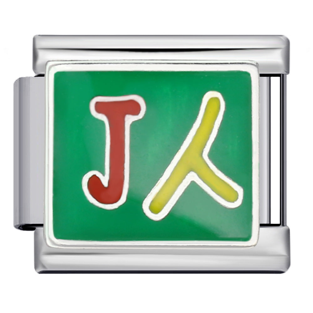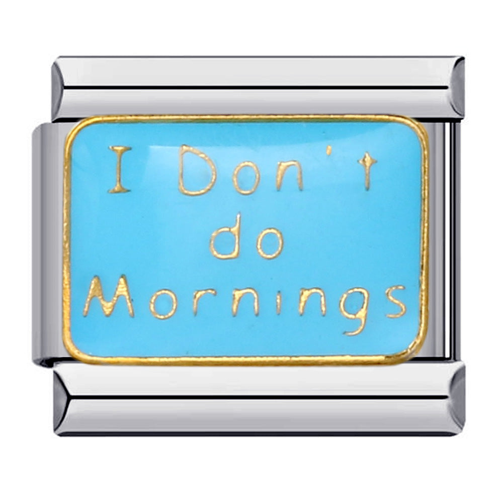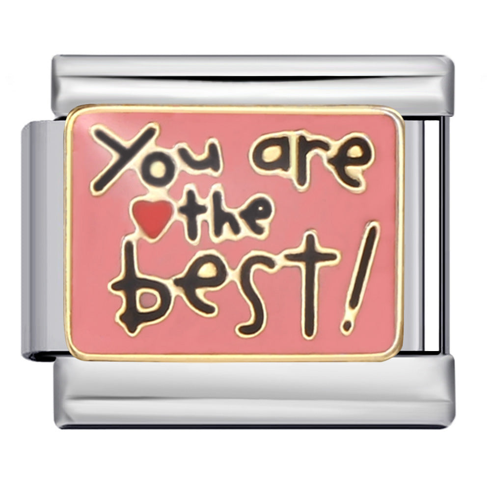 Wholesale Italian Module Long Edition Letter Titanium Steel Welding Oil Dropping DIY Charm