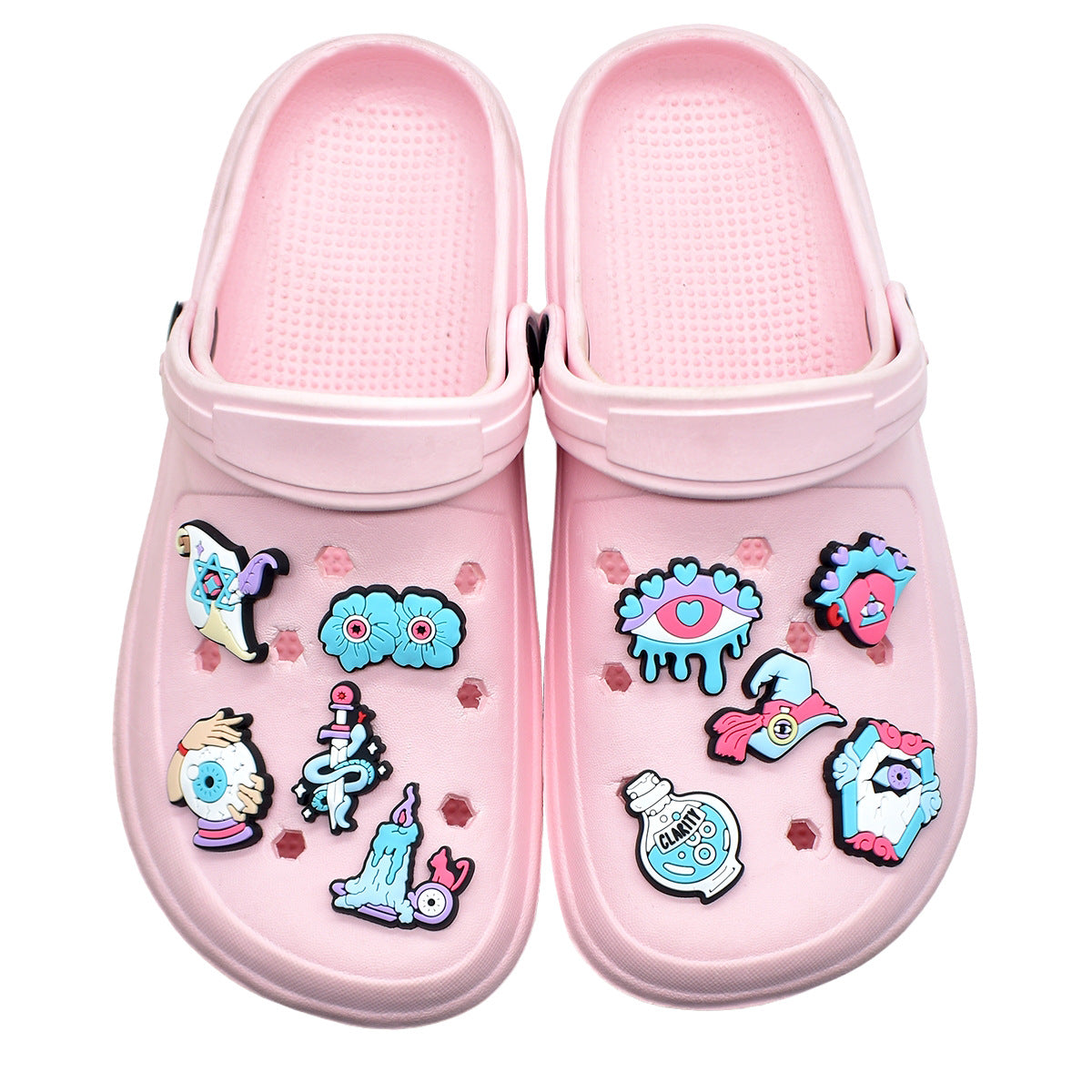 Decorazione casuale all'ingrosso della fibbia della scarpa di gomma morbida del PVC della serie della strega da 100 pezzi