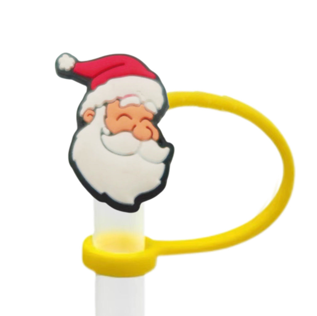 Wholesale 10pcs Christmas themed food grade silicone Straw Cover Straw Tube Cap