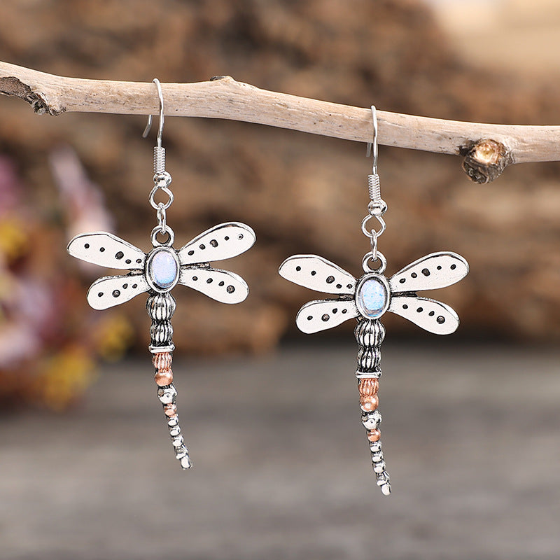 Wholesale retro design sense Dragonfly earrings creative insects moonstone earrings