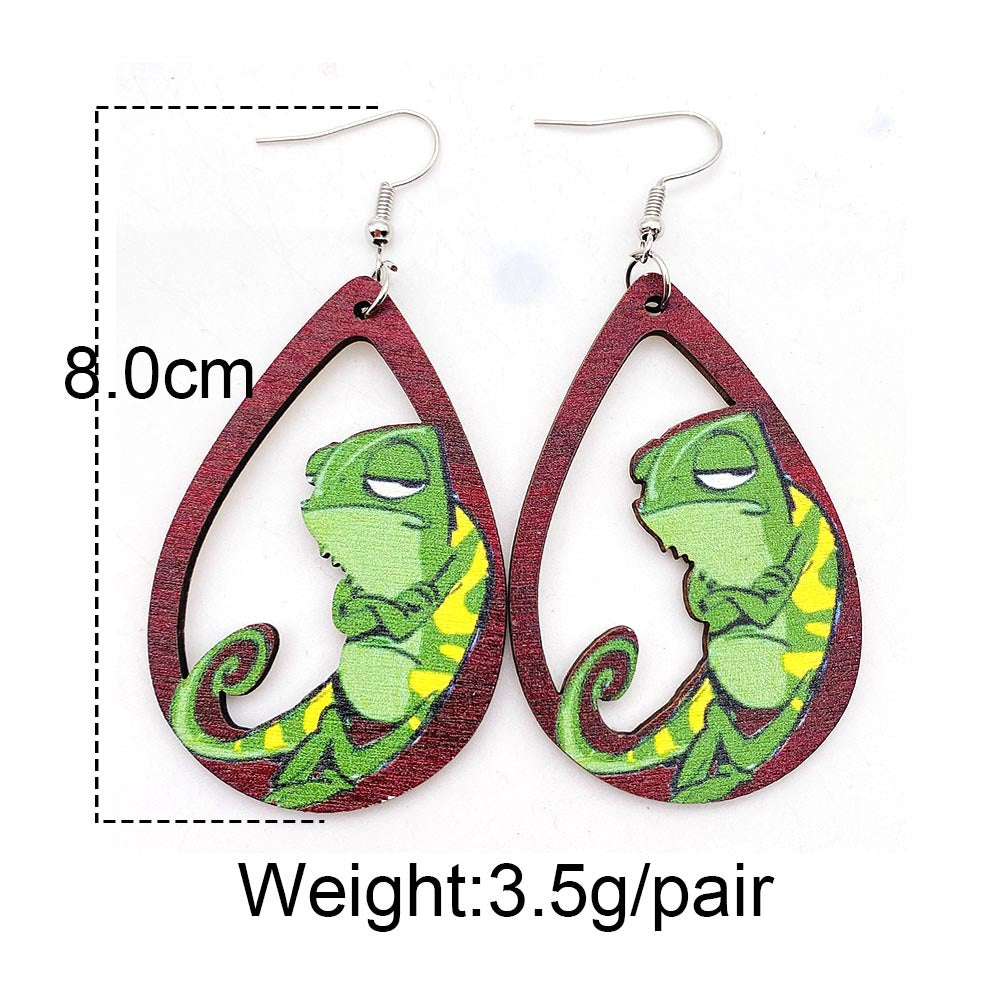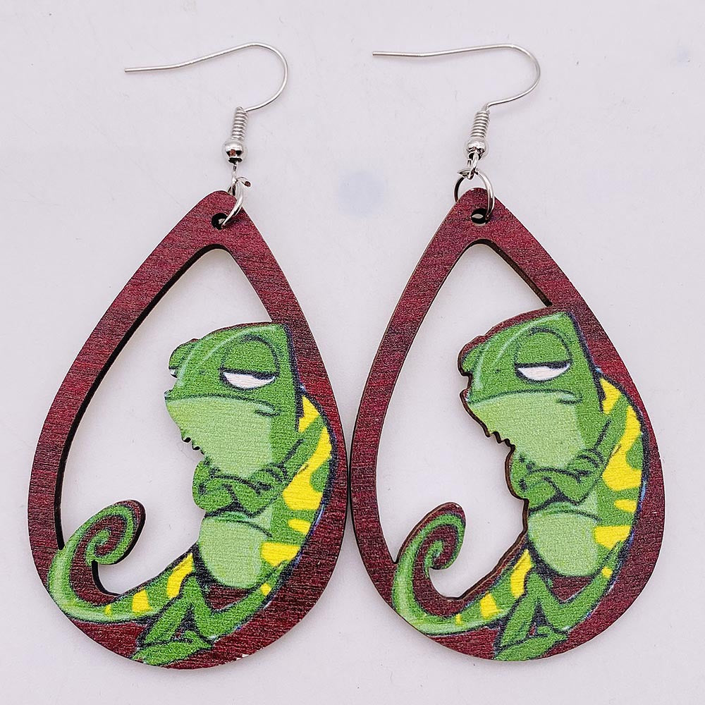 Orecchini vuoti di legno all'ingrosso della cavità del camaleonte della rana del fumetto di legno
