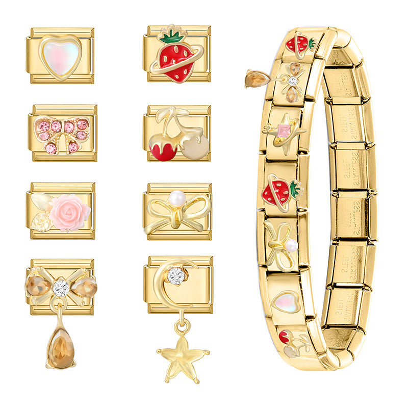 Wholesale 9mm Italian Charm Starter Bracelets DIY square Single Section Creative Stainless Steel Composable Bracelet