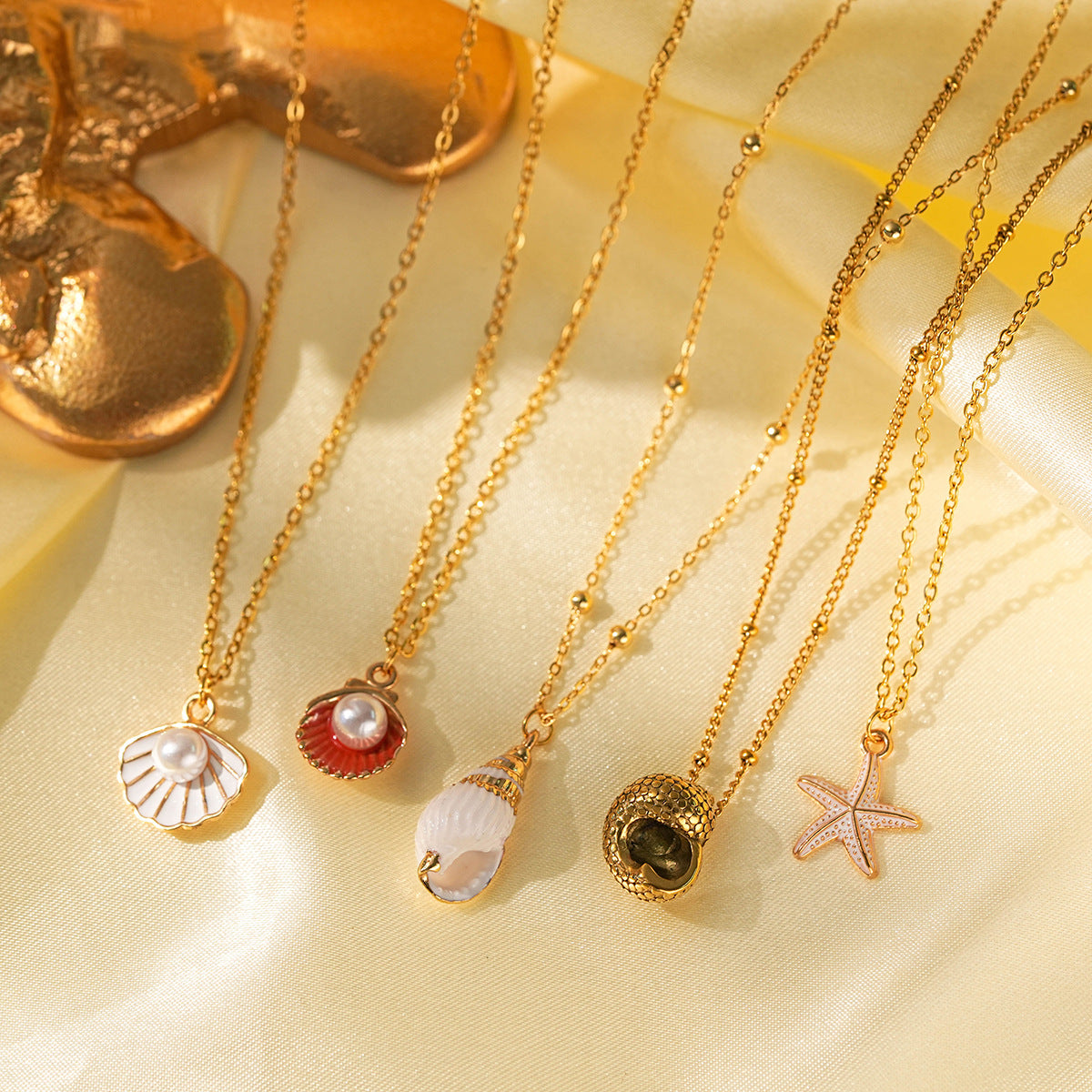 Wholesale Bohemia do not fade titanium steel pearl pendant necklace