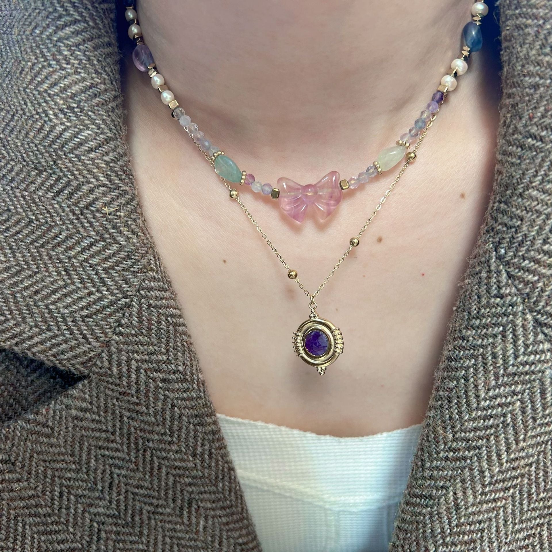 Wholesale Stainless steel Colorful Natural Stone Pearl Beaded Necklace