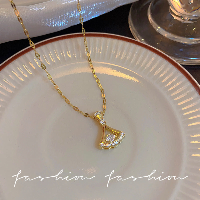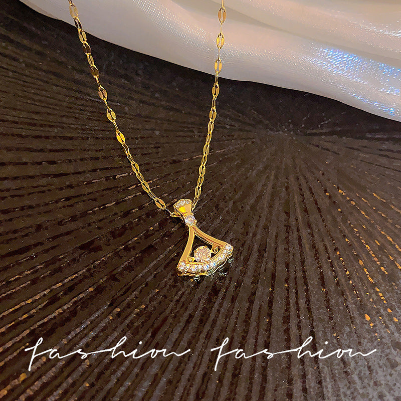 Wholesale Titanium Steel Fan-shaped Smart Necklace Heart Elegant Pendant Clavicle Chain