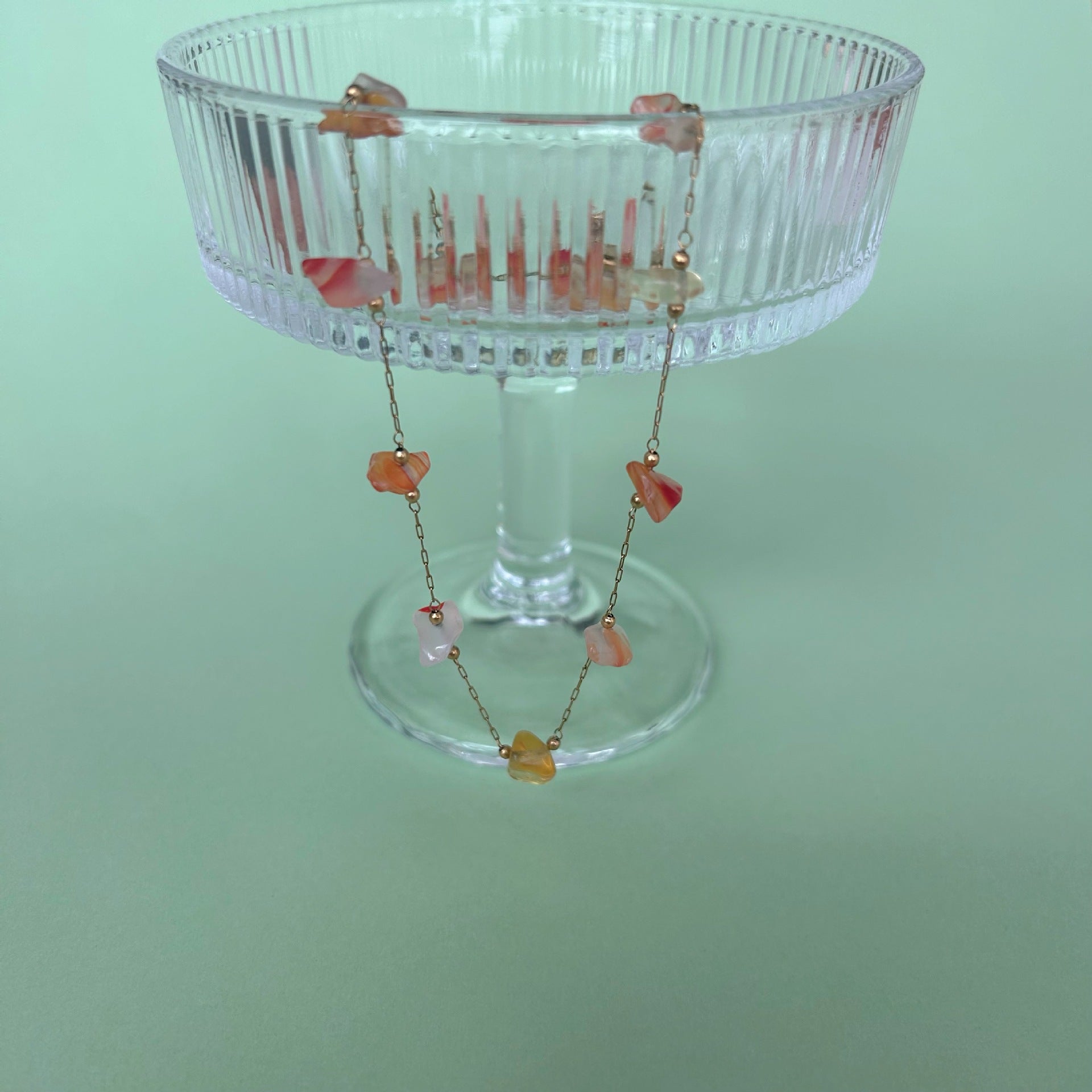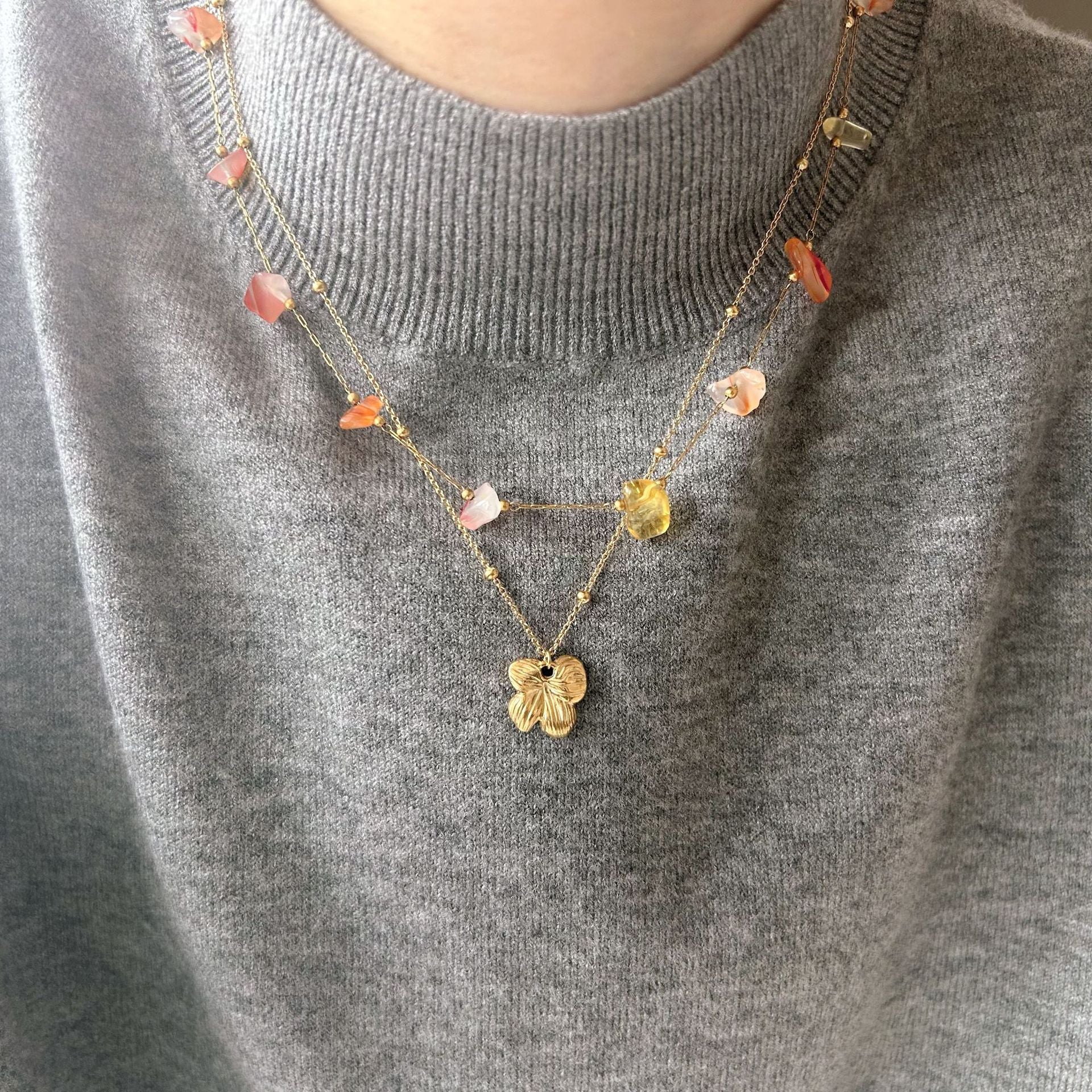 Wholesale Stainless Steel Irregular Natural Stone Beaded Leaf Pendant Chain Necklaces