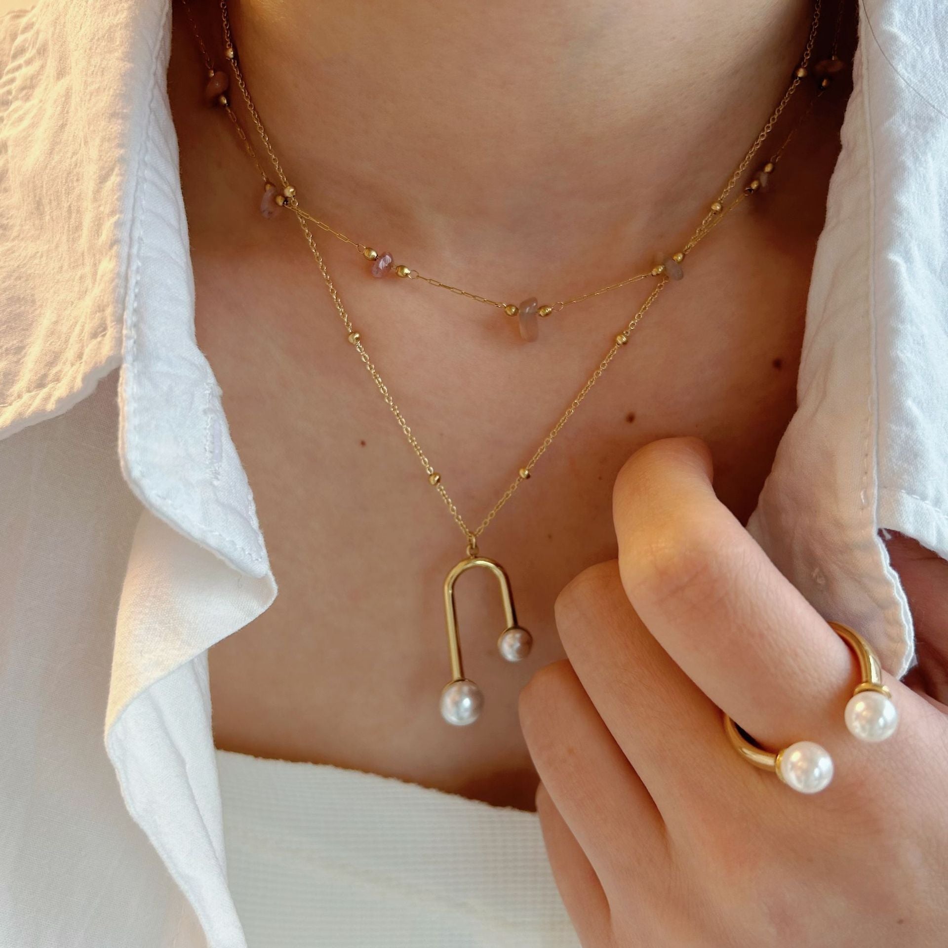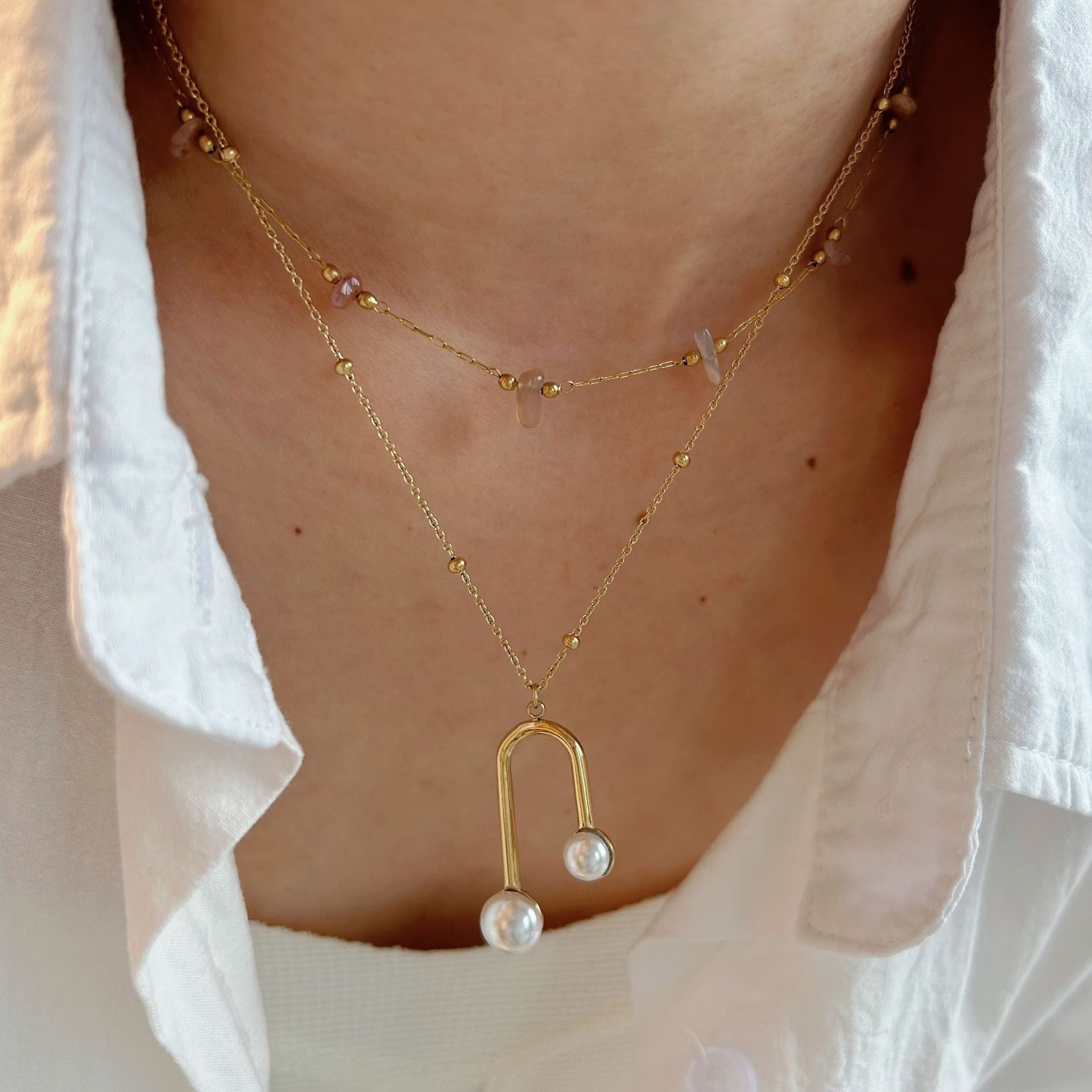 Wholesale Natural Stone Beaded Necklace Beads Geometric Pendant Stainless Steel Chain