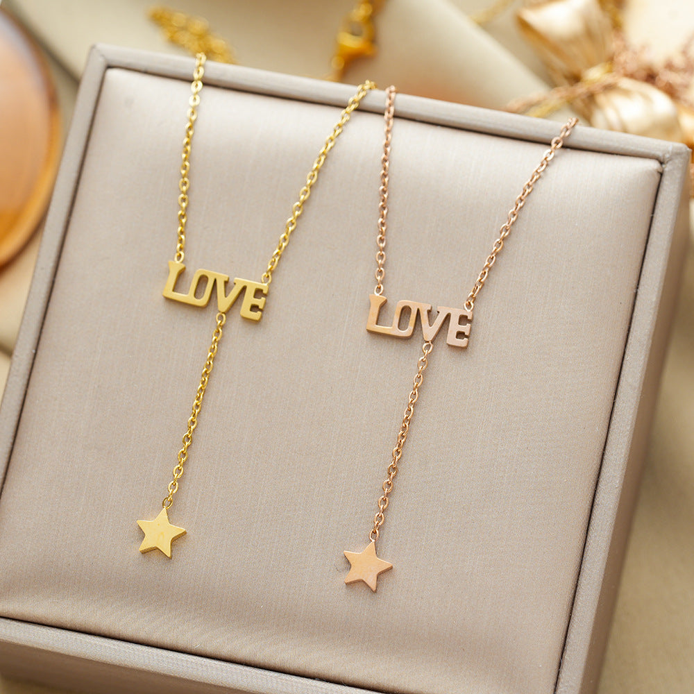 Wholesale Simple Love Tassel Star Titanium Steel Collarbone Chain Short Chain Necklaces