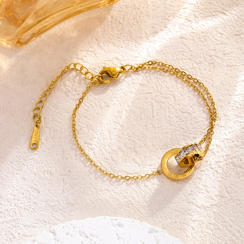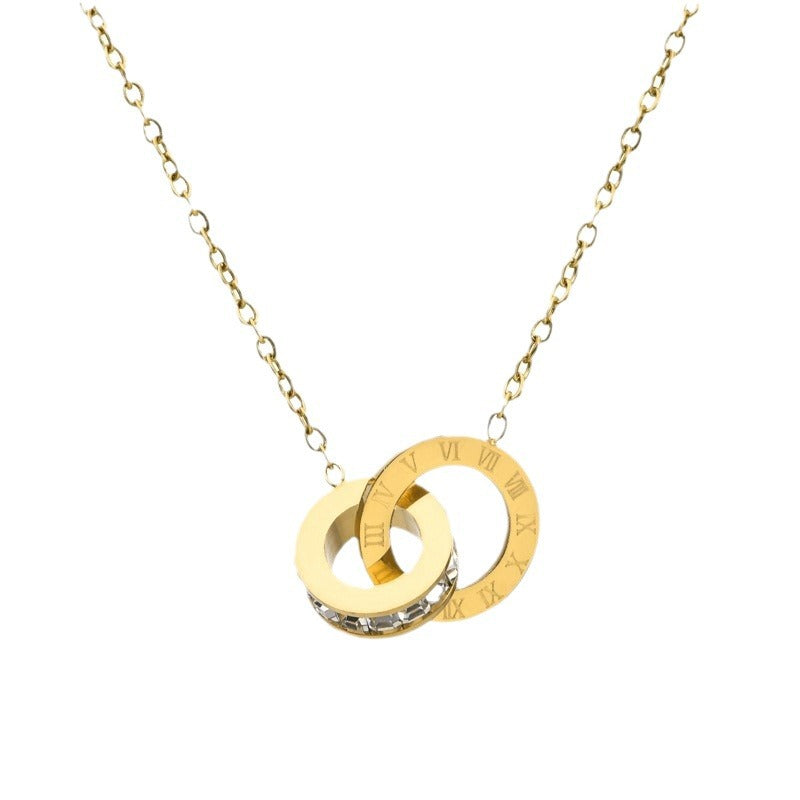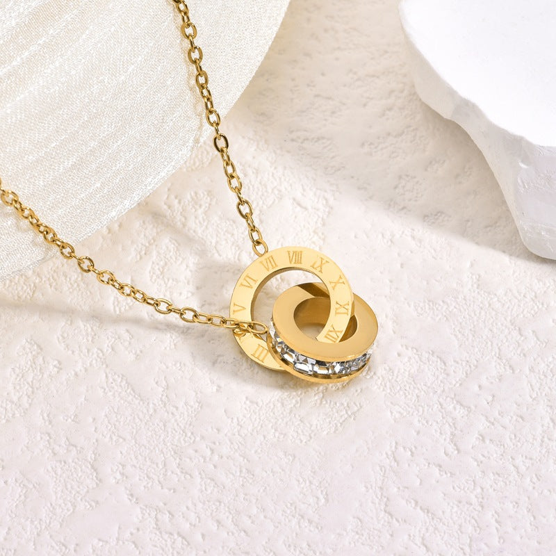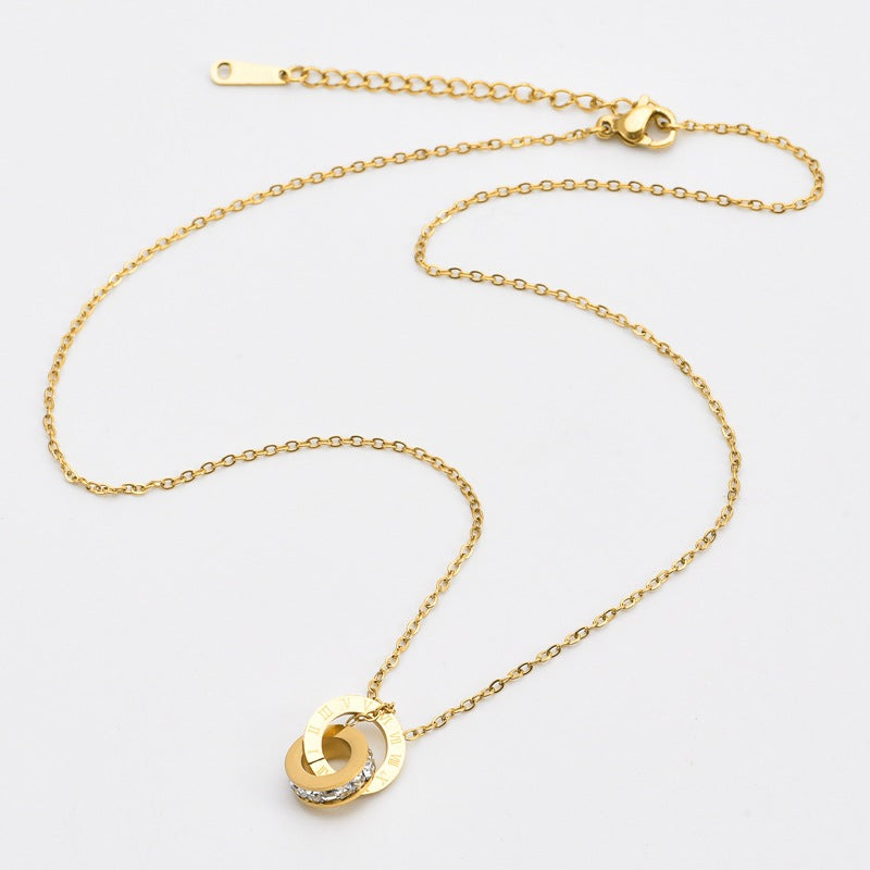 Wholesale Titanium Steel Double Ring Zircon Necklace ACCVIP
