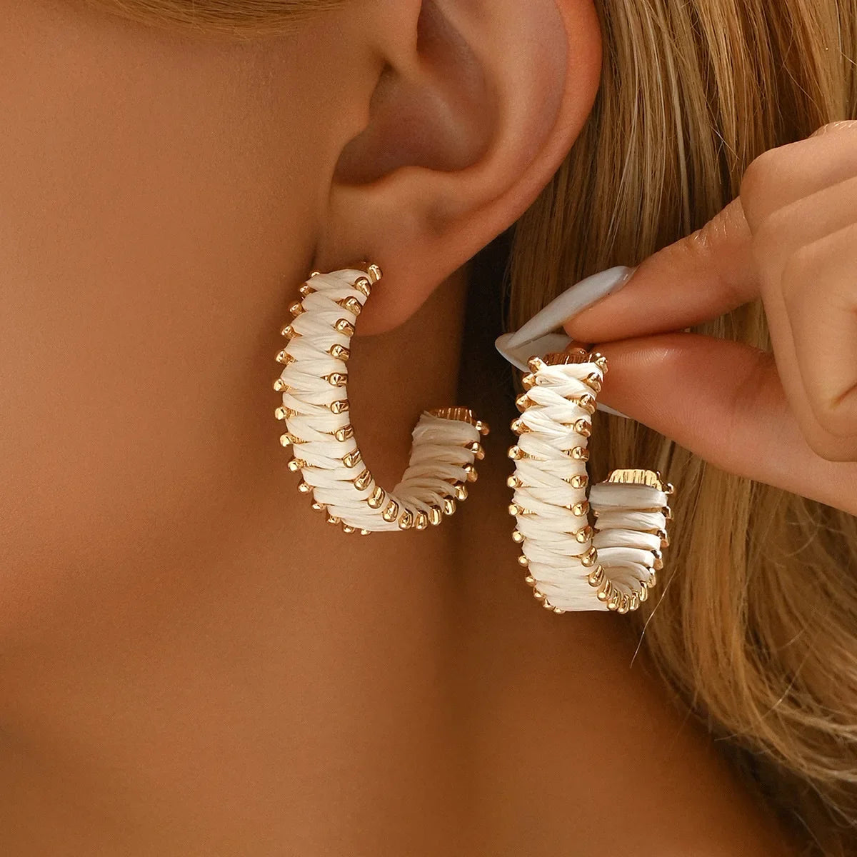 Wholesale Bohemian C- Shaped Rafi Grass Wrap Earrings