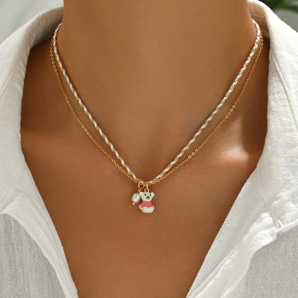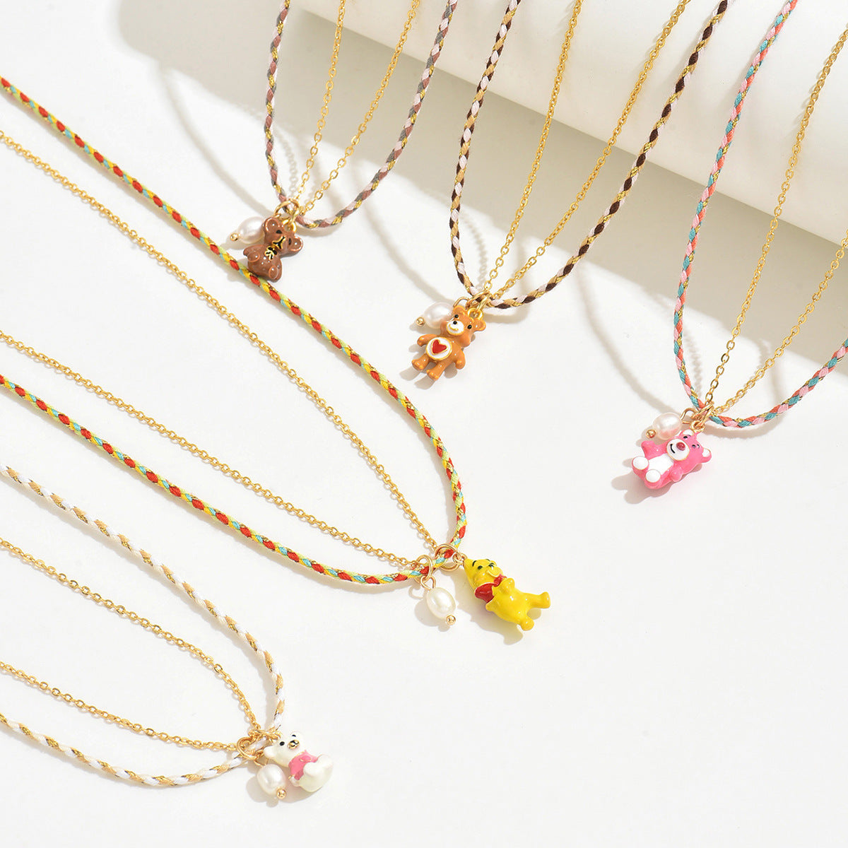 Wholesale Fashion Copper Plated Gold Enamel Pendant Bear Necklace