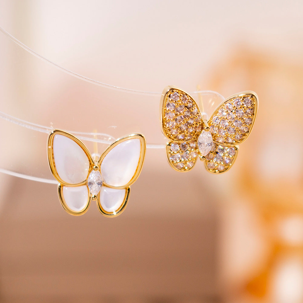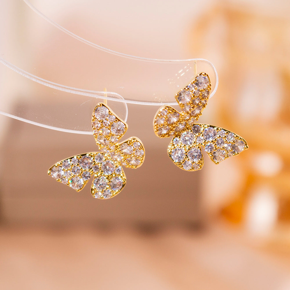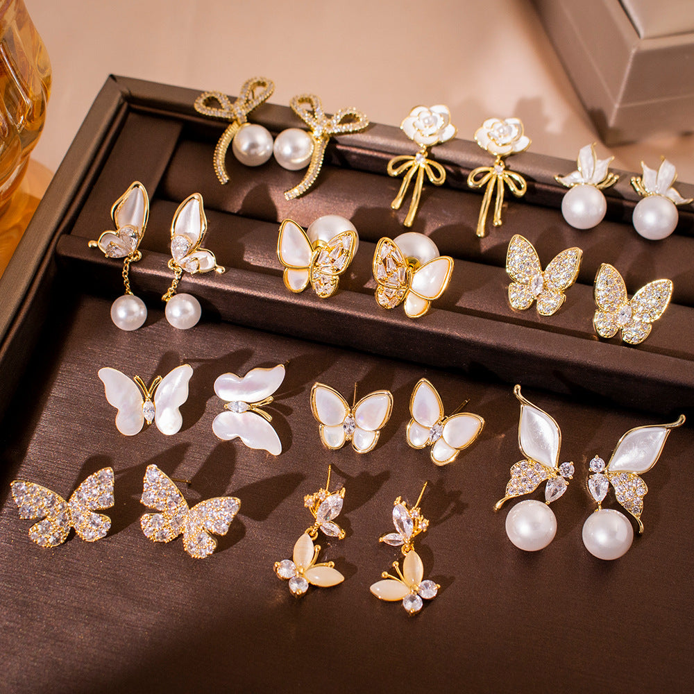 Wholesale Silver Needle High-grade Zircon Butterfly Pearl Earrings