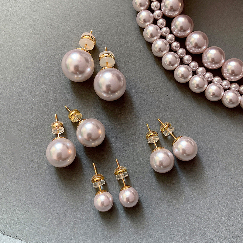 Wholesale Sterling Silver Aurora Purple Steamed Bread Big Pearl Earrings