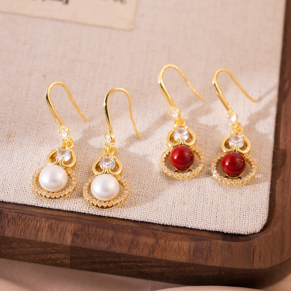 Wholesale Zircon Pearl Ear Hook Hollow Design Earrings Retro Earrings