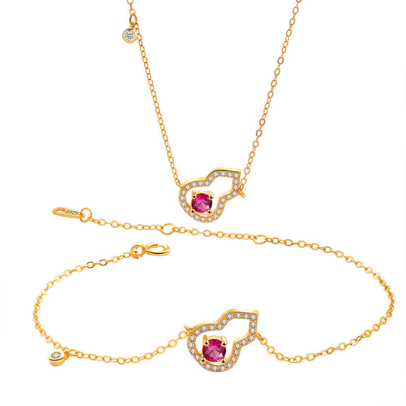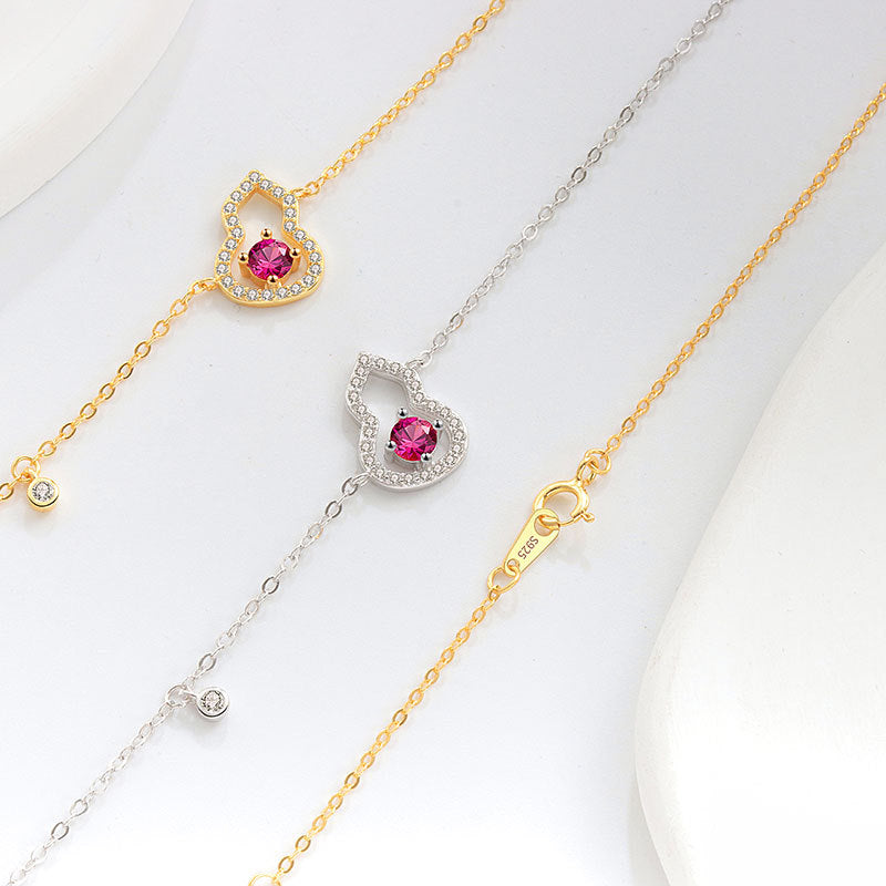 Wholesale S925 Sterling Silver Plated 18K Gold Hollow Gourd Shape Pendant Necklace