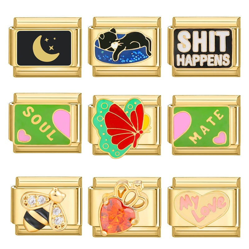 Wholesale Italian Charm Bracelet 9mm DIY Splicing Removable Stainless Steel Gold Bottom Light Luxury Composable Bracelet