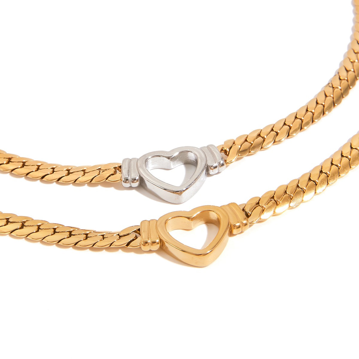 Wholesale Stainless steel 14K Gold Cut Out Heart Flat Snake Chain Necklace