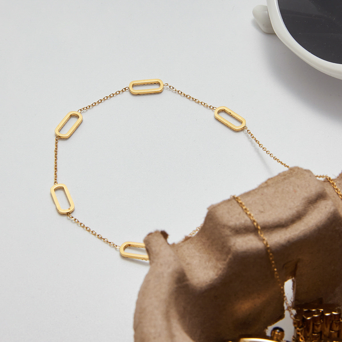 Wholesale 18K Gold Stainless Steel Oval Pendant Necklace with White Diamonds