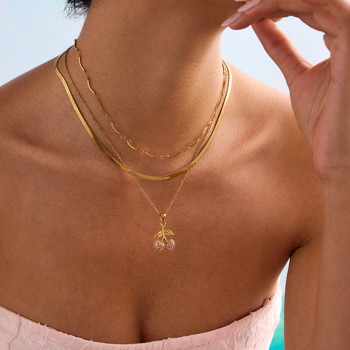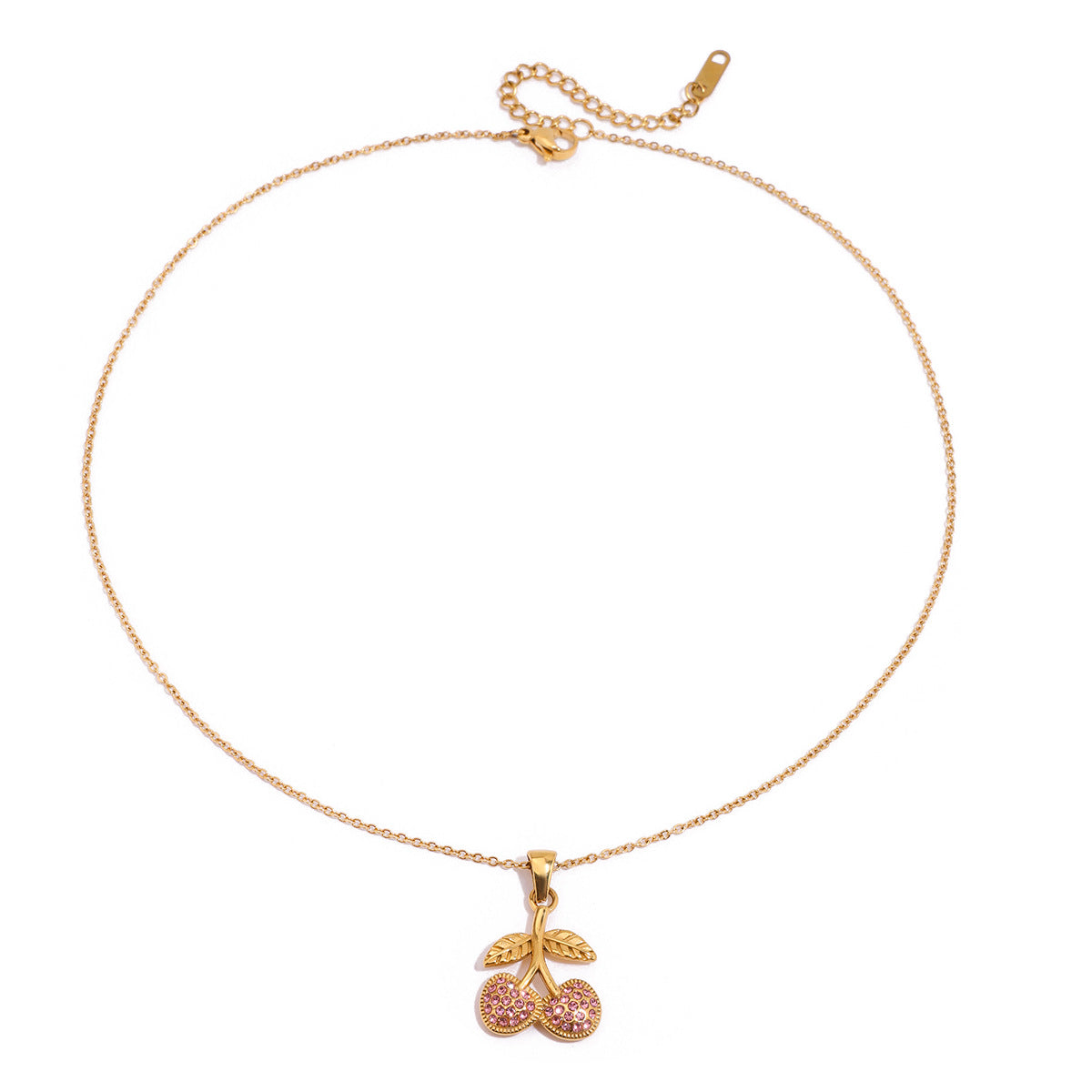 Wholesale 18K Gold Stainless Steel Pink Zircon Cherry Necklace