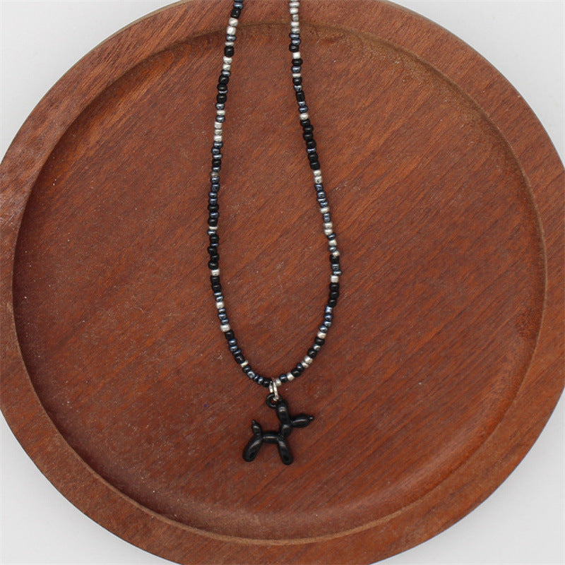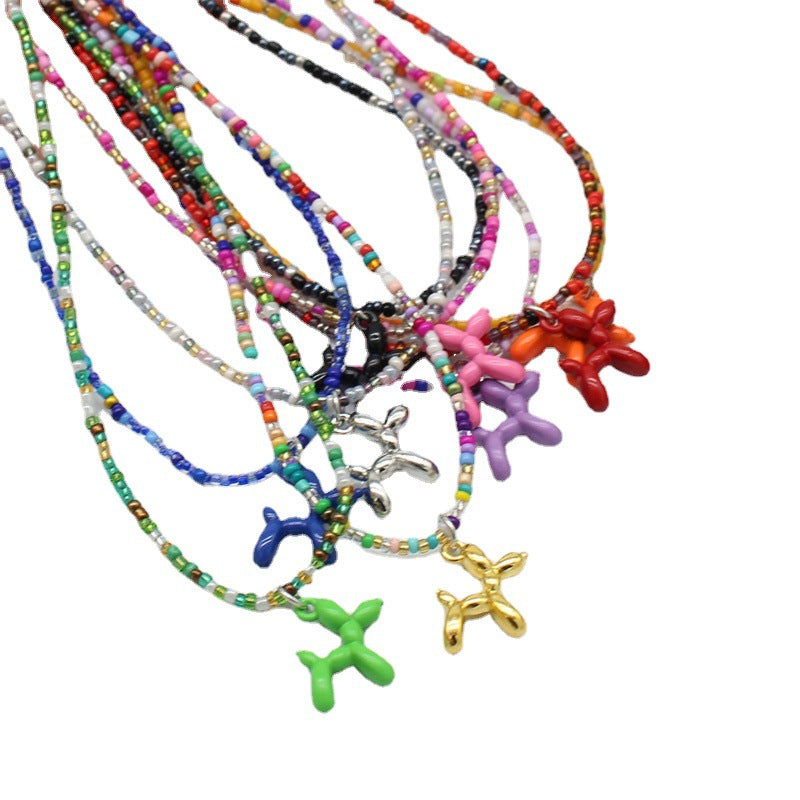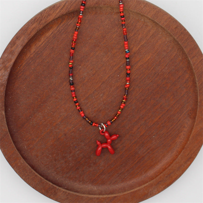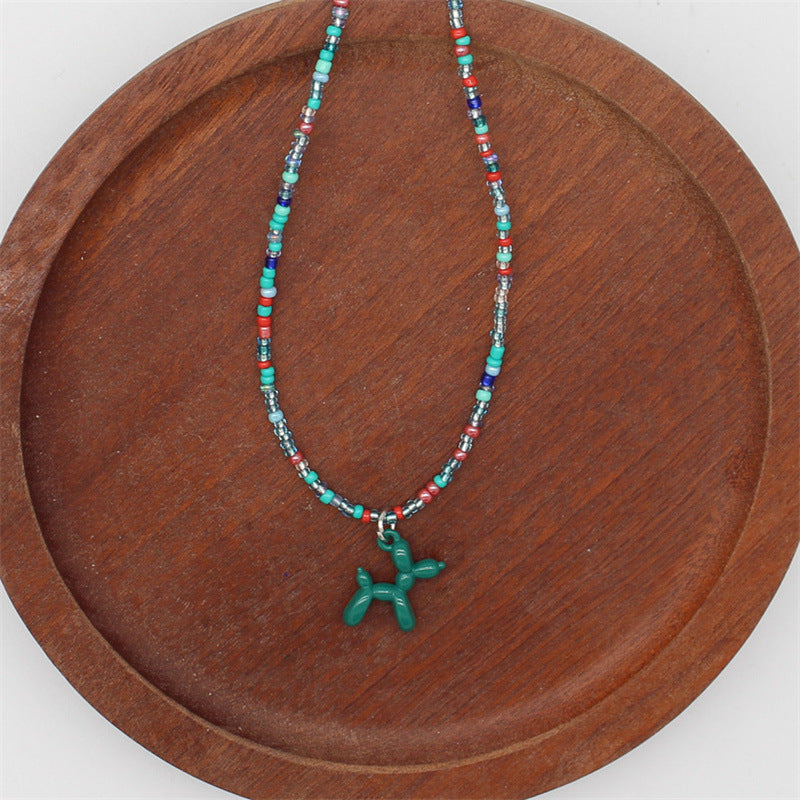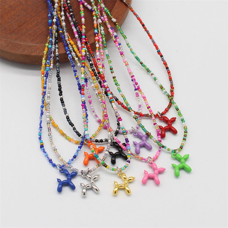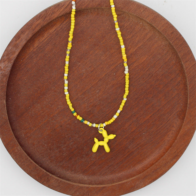 Wholesale cartoon puppy pendant macaron candy color rice beads beaded necklace
