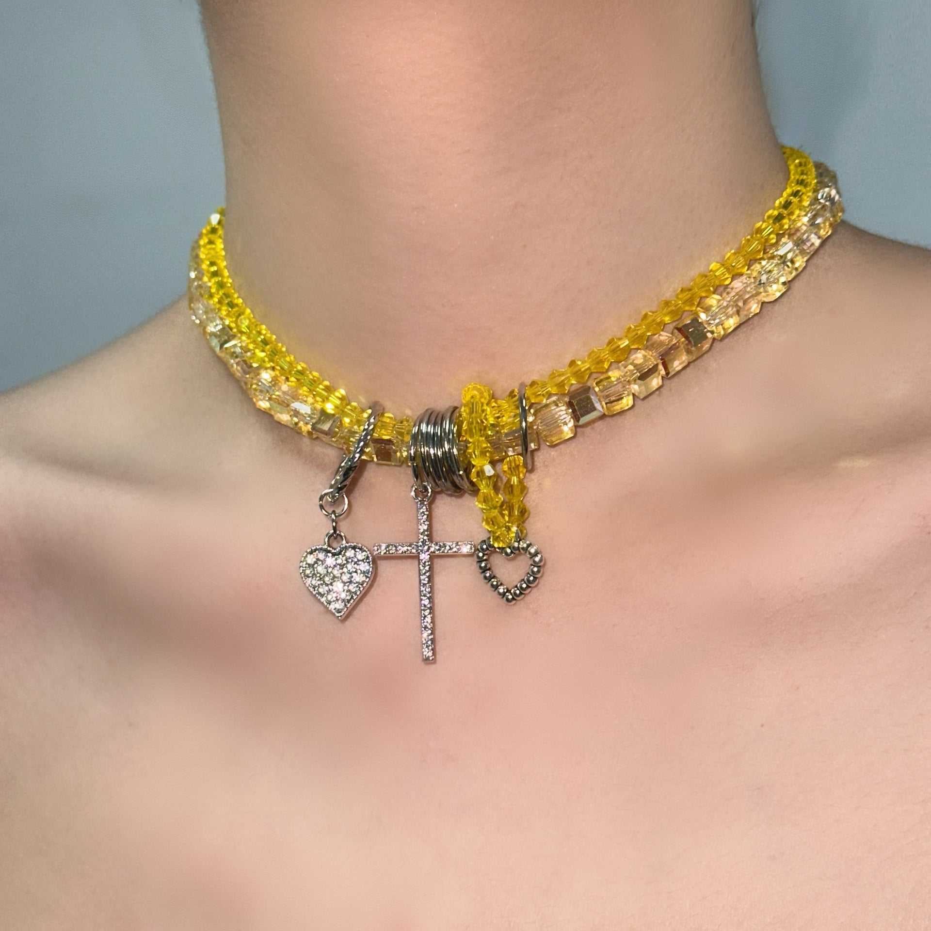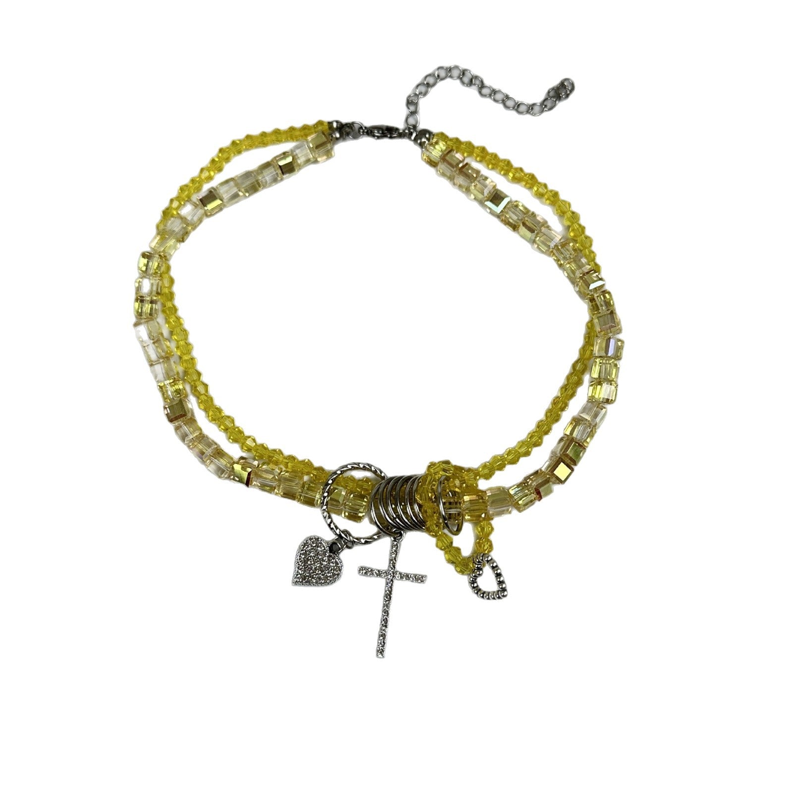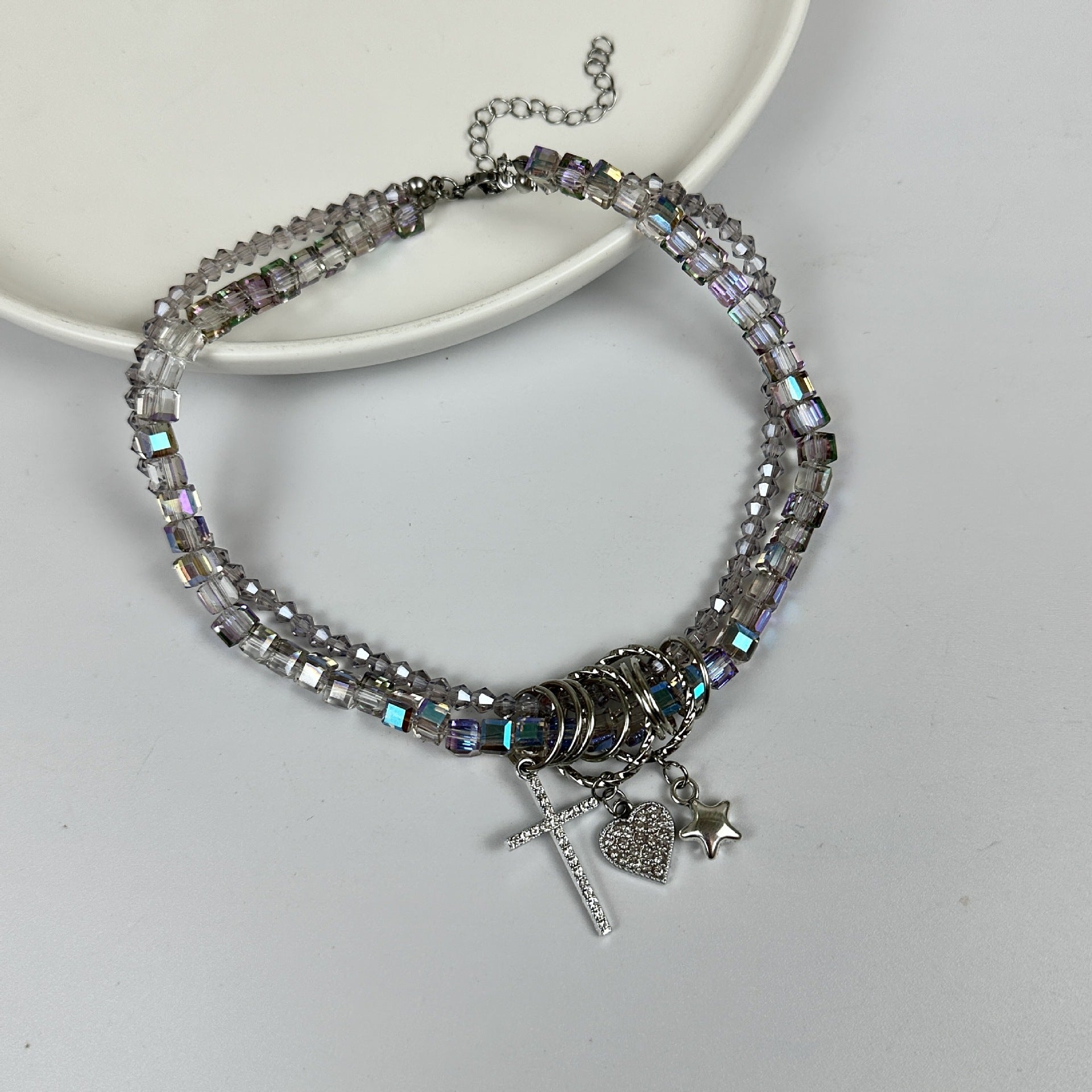 Wholesale Double-layer crystal beaded heart star personality cross tassel necklace