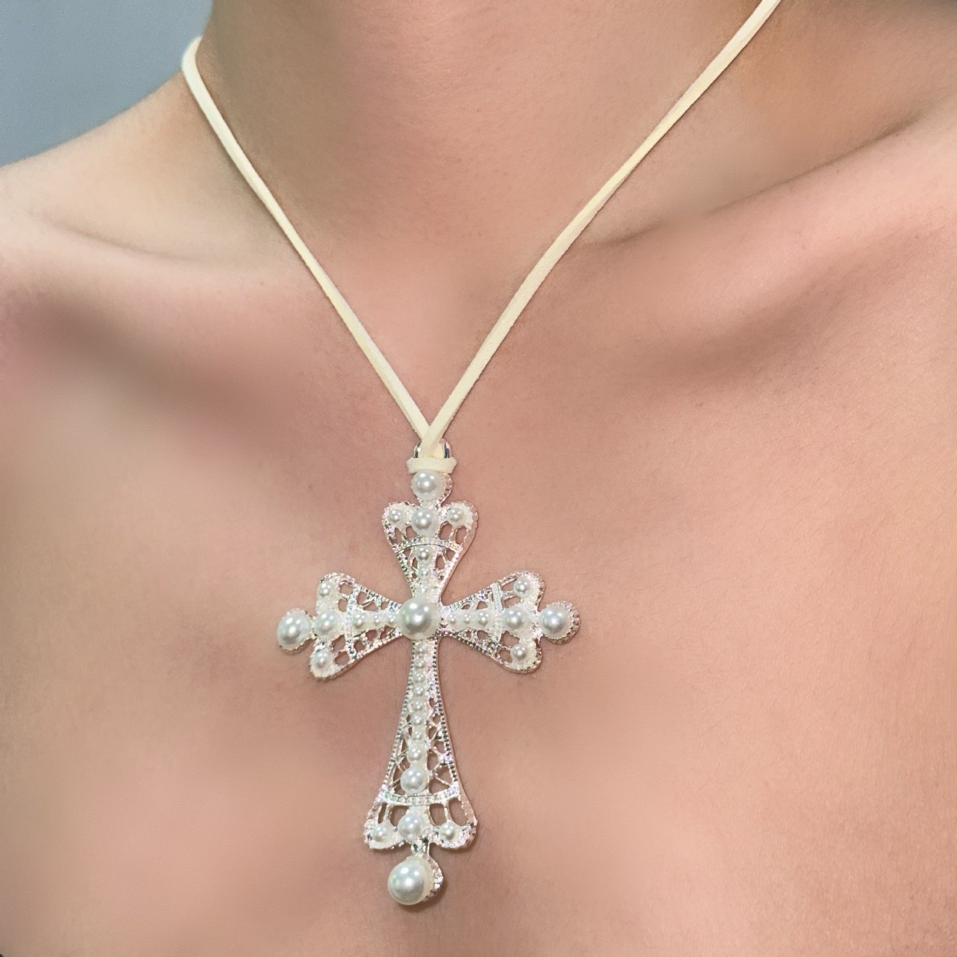 Wholesale Exaggerated diamond cross necklace pull-out collar