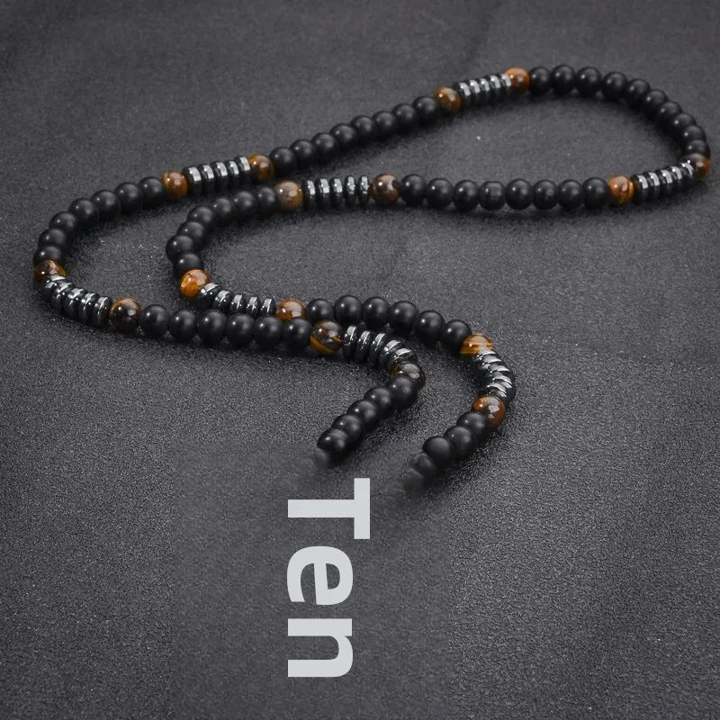 Wholesale Fashion Men's Black Obsidian Frosted Tiger Eye Stone Red Iron Mineral Ten Crosses Necklace