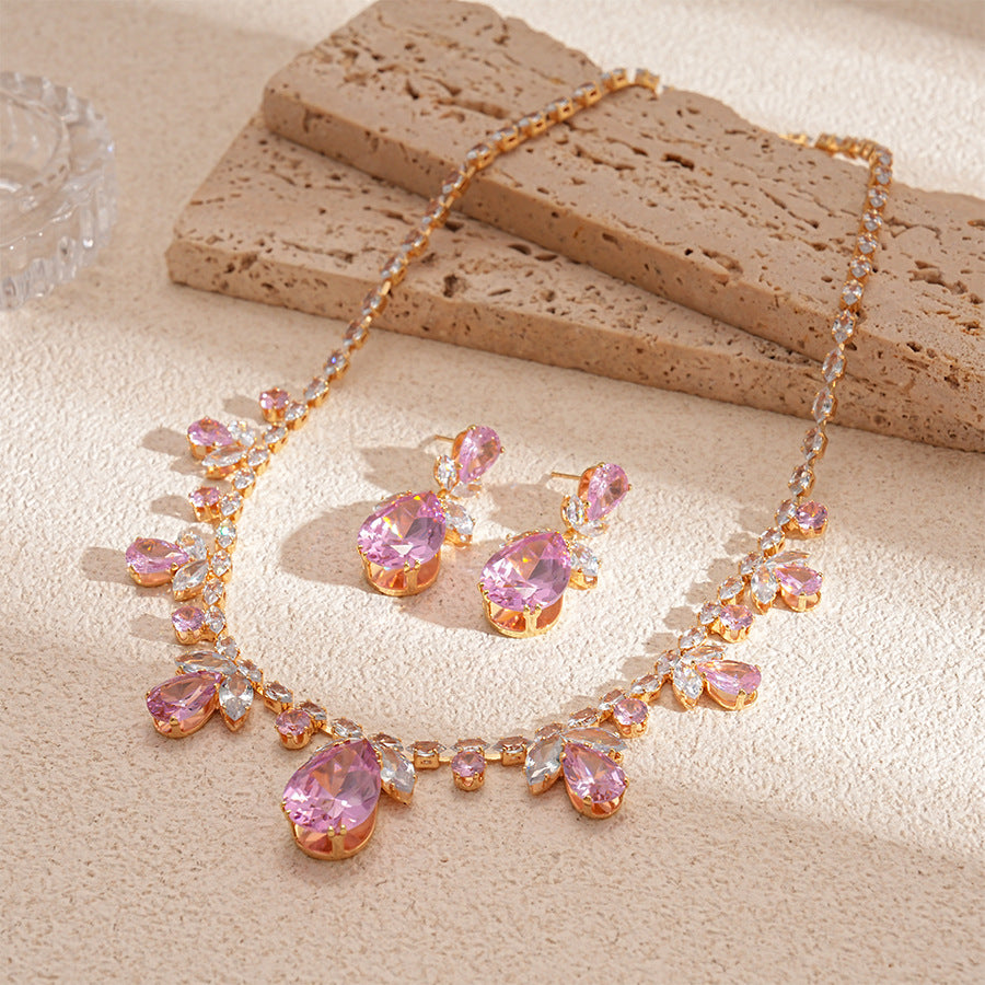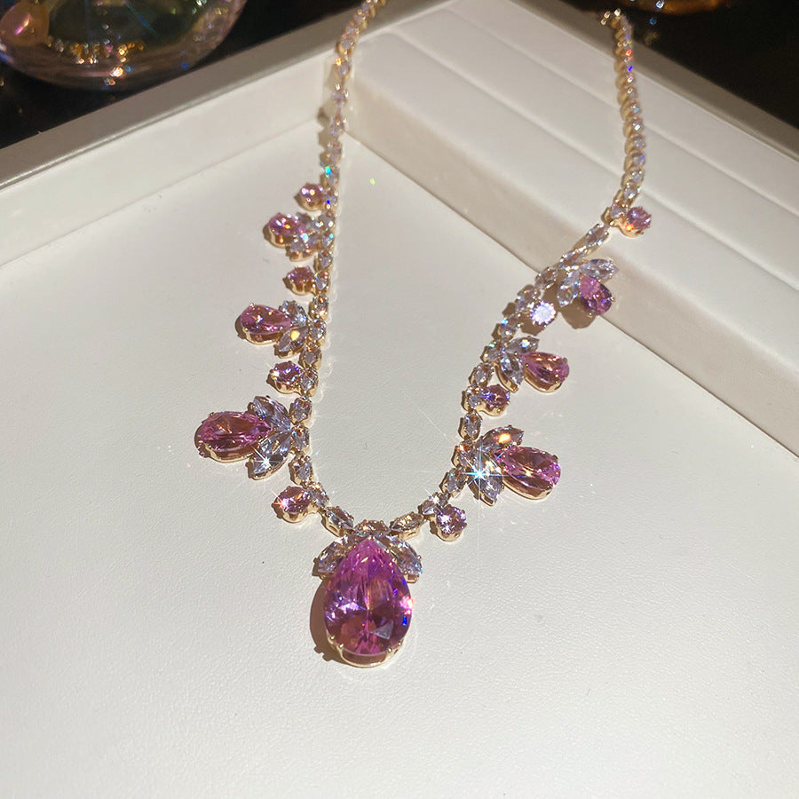 Wholesale Light luxury zircon water drop flower geometric necklace