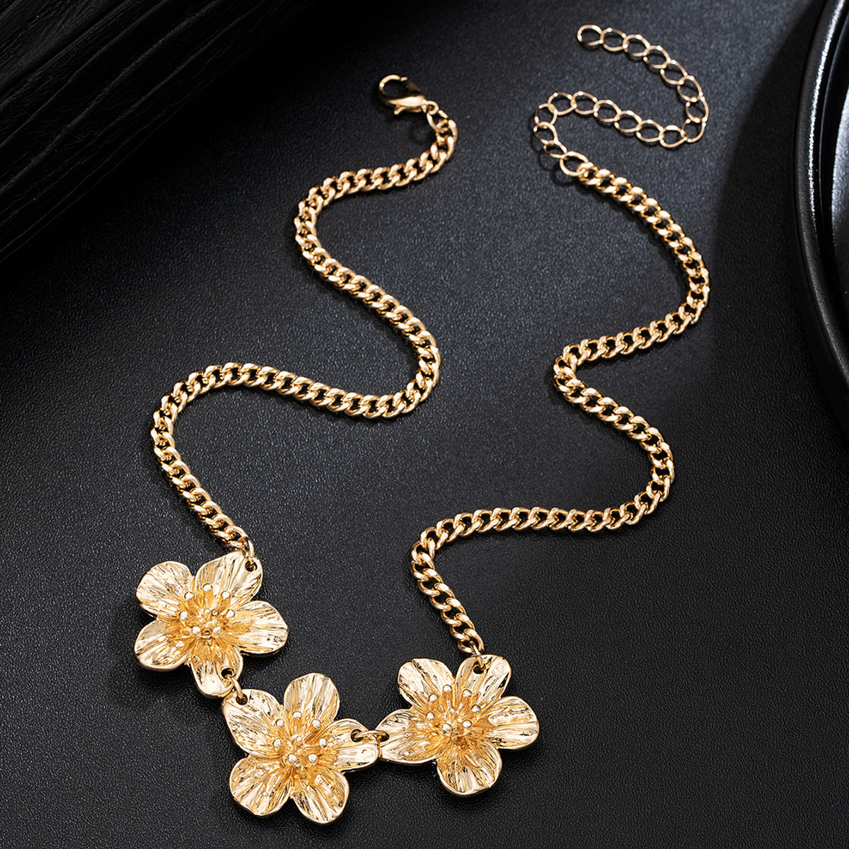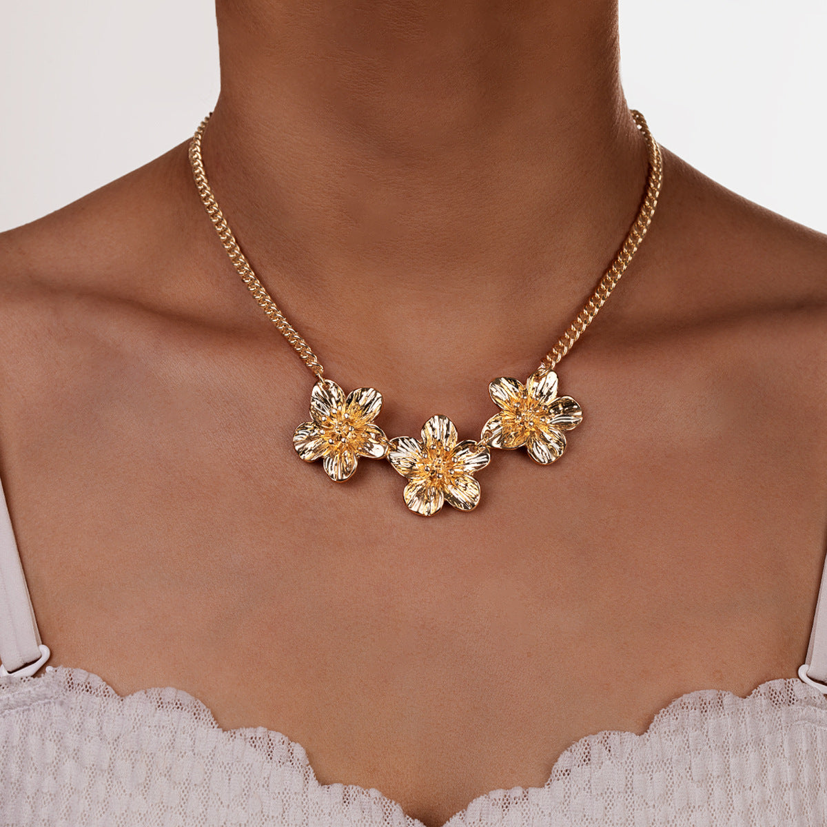 Wholesale Metal Flower Five-petal Metal Chain Adjustable Women's Necklace