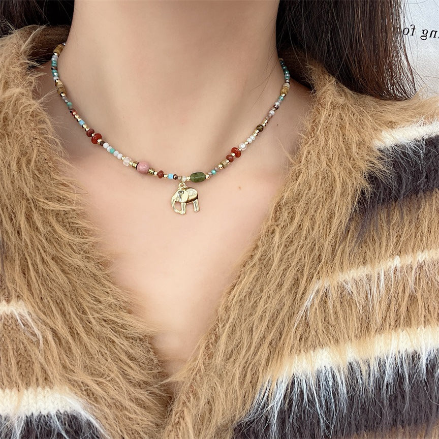 Wholesale Natural Stone Beaded Elephant Pendant Necklace