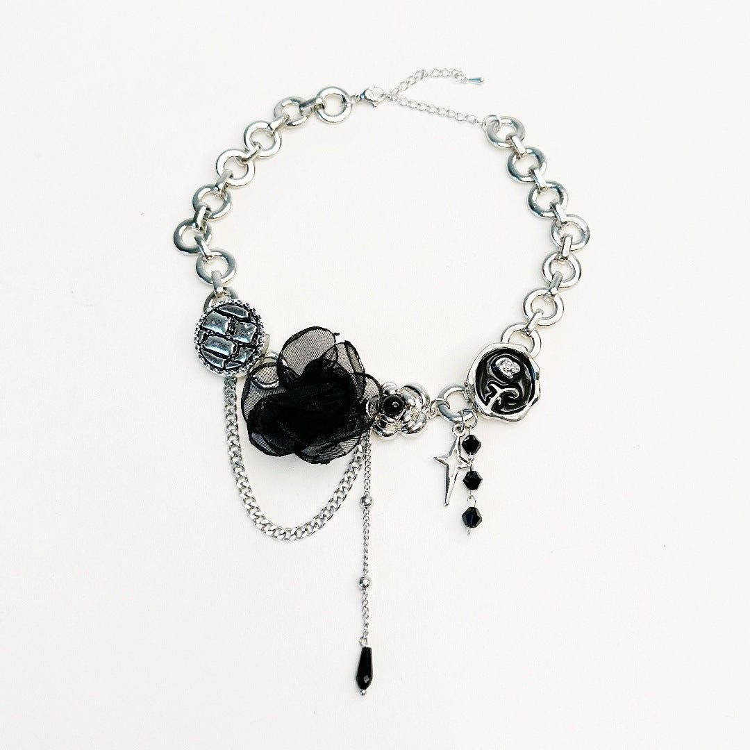 Wholesale Button Lace Rose Stitching Flower Necklace
