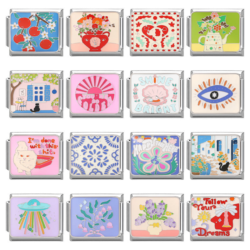Wholesale 9mm Italian Charm Starter Bracelets DIY square Single Section Creative Stainless Steel Composable Bracelet