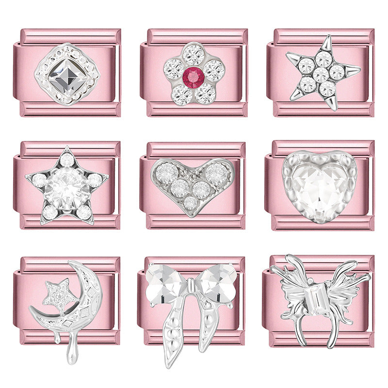 Wholesale 9mm Italian Charm Starter Bracelets pink series DIY Single Section Creative Stainless Steel Composable Bracelet