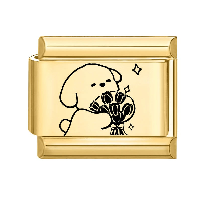 Wholesale Number & Letter Italian Charms DIY square Single Section Creative Stainless Steel Composable Bracelet