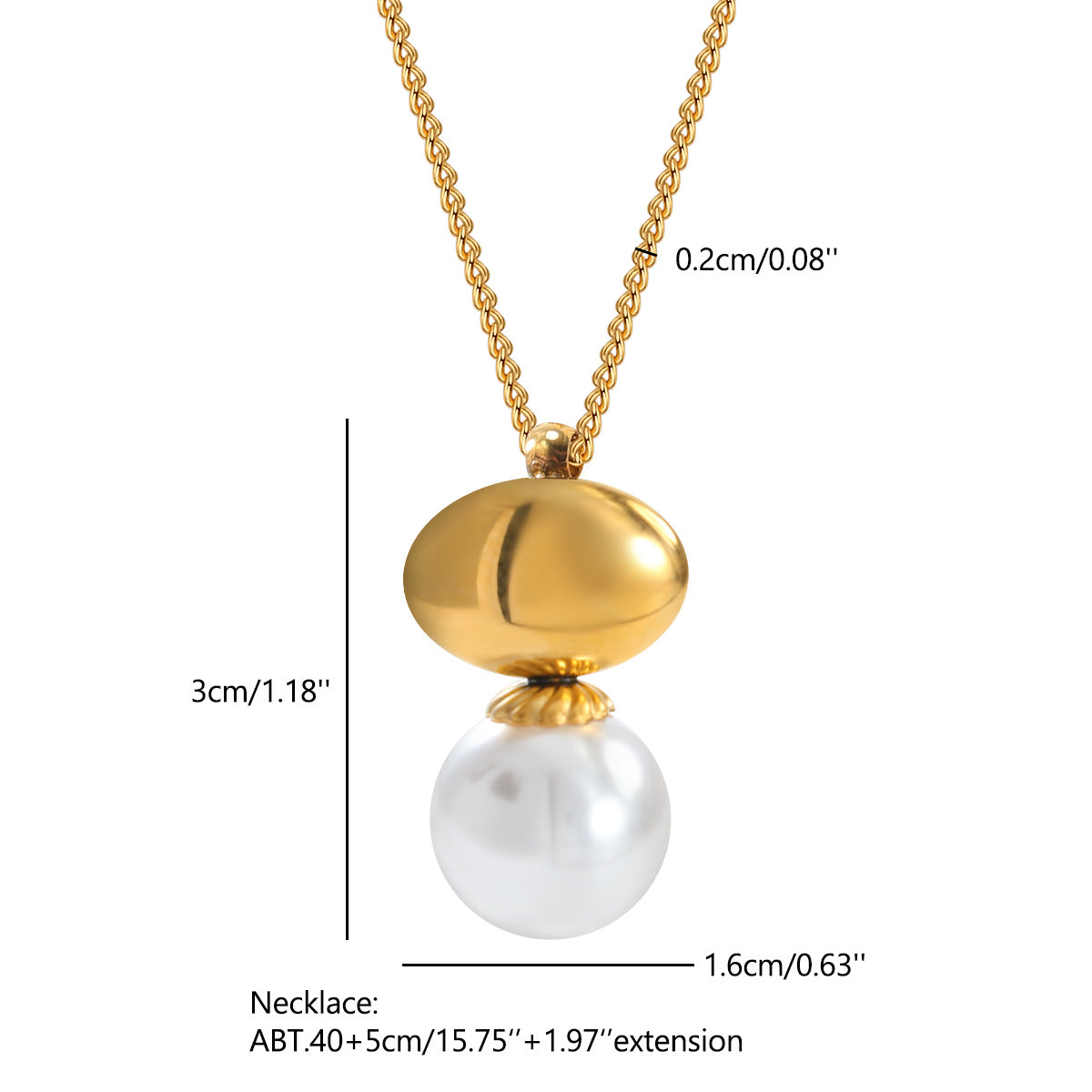 - Gold oval + pearl pendant necklace