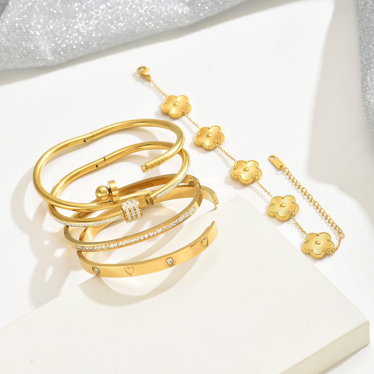 Wholesale Titanium steel nail four-leaf clover diamond-encrusted bracelet ACCVIP