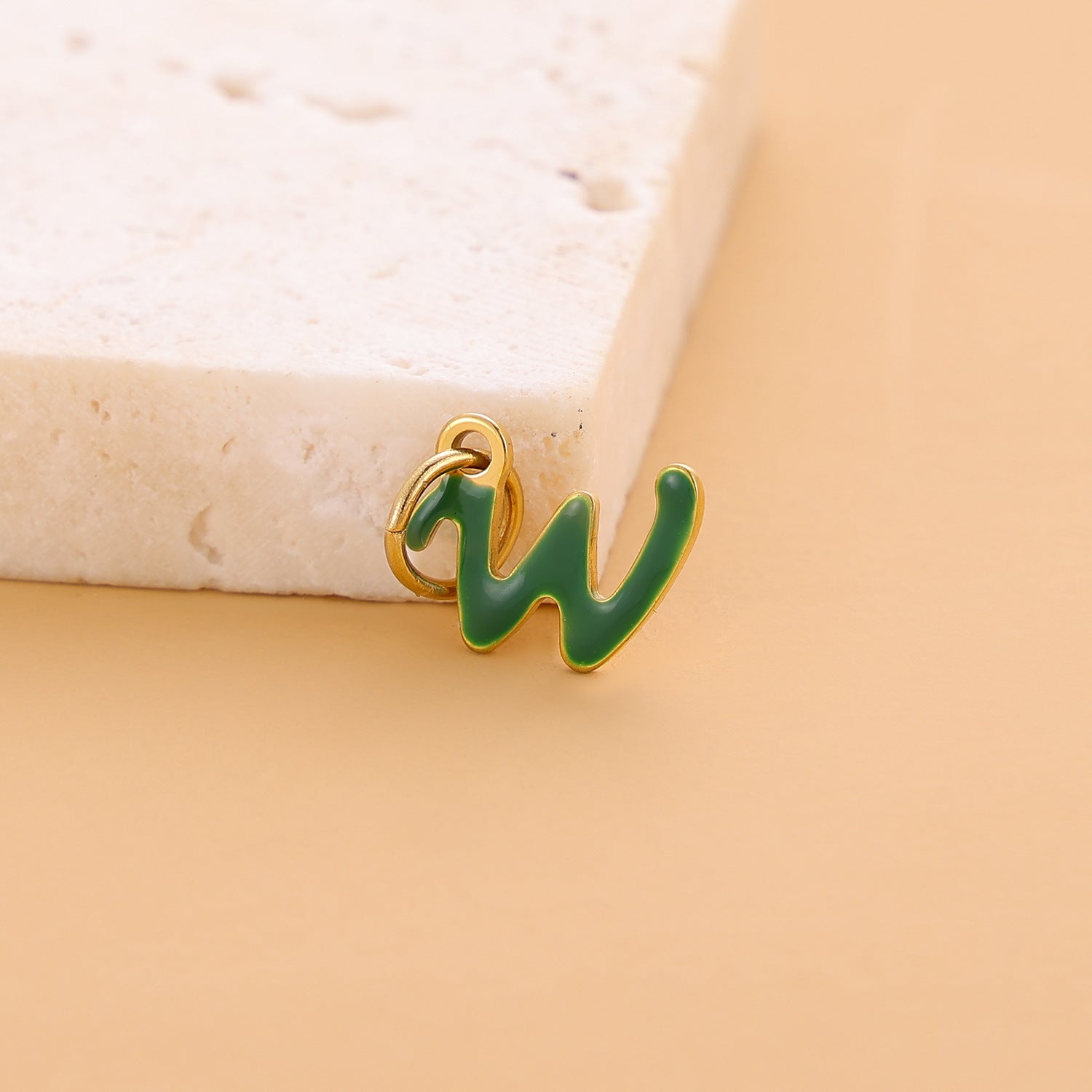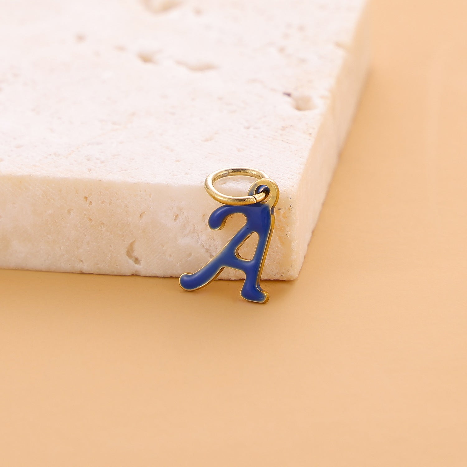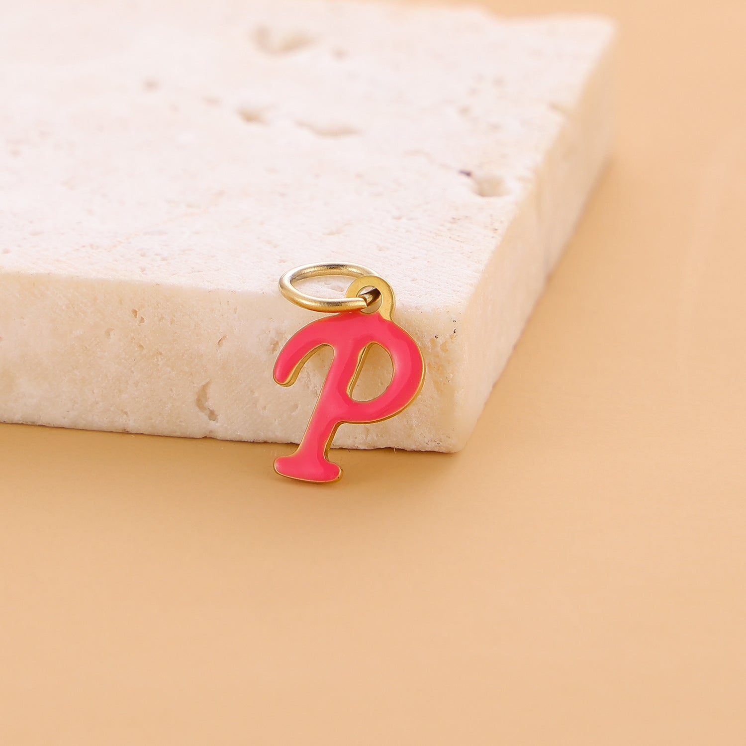 Wholesale Colorful 26 English letter pendant oil drop titanium steel vacuum plating pendant