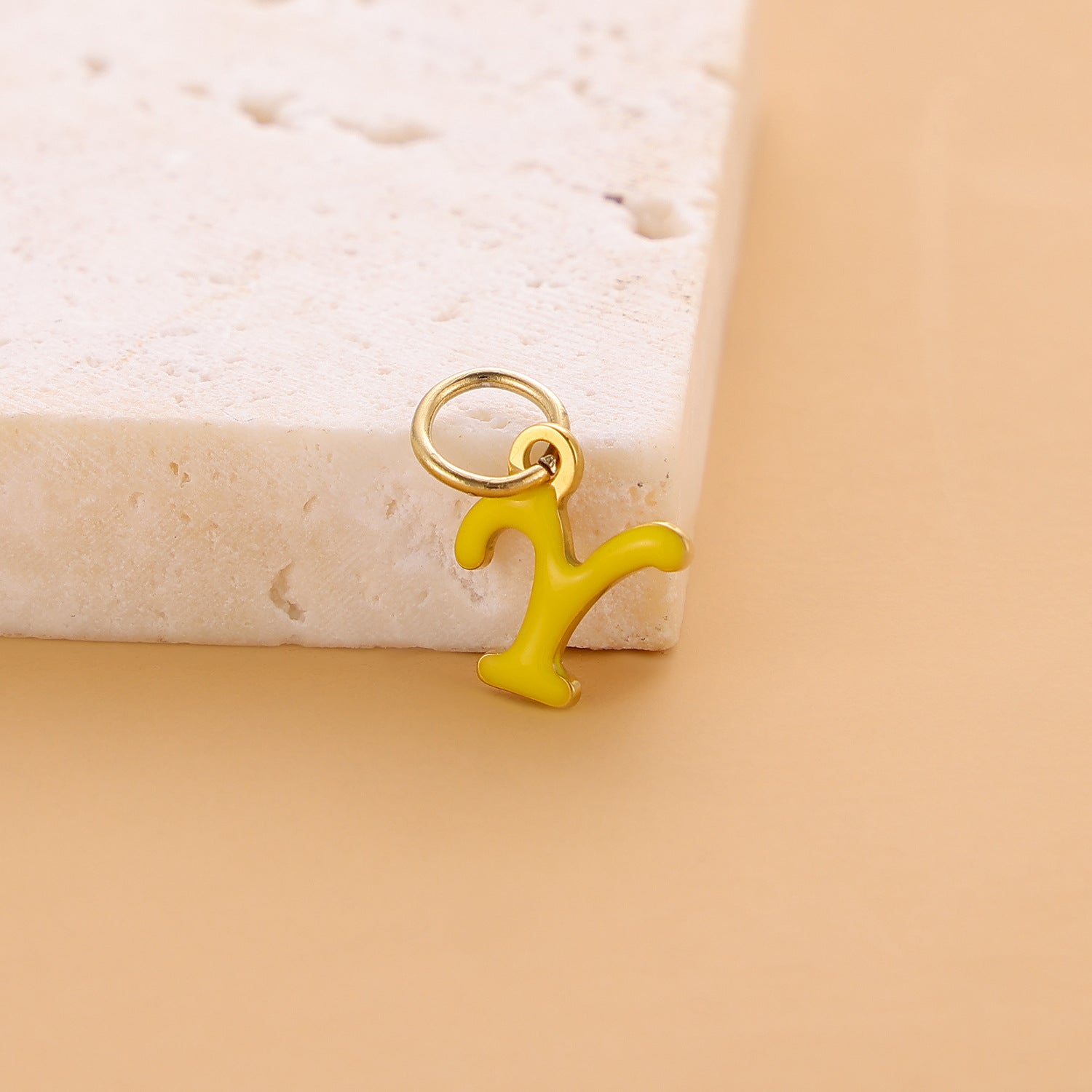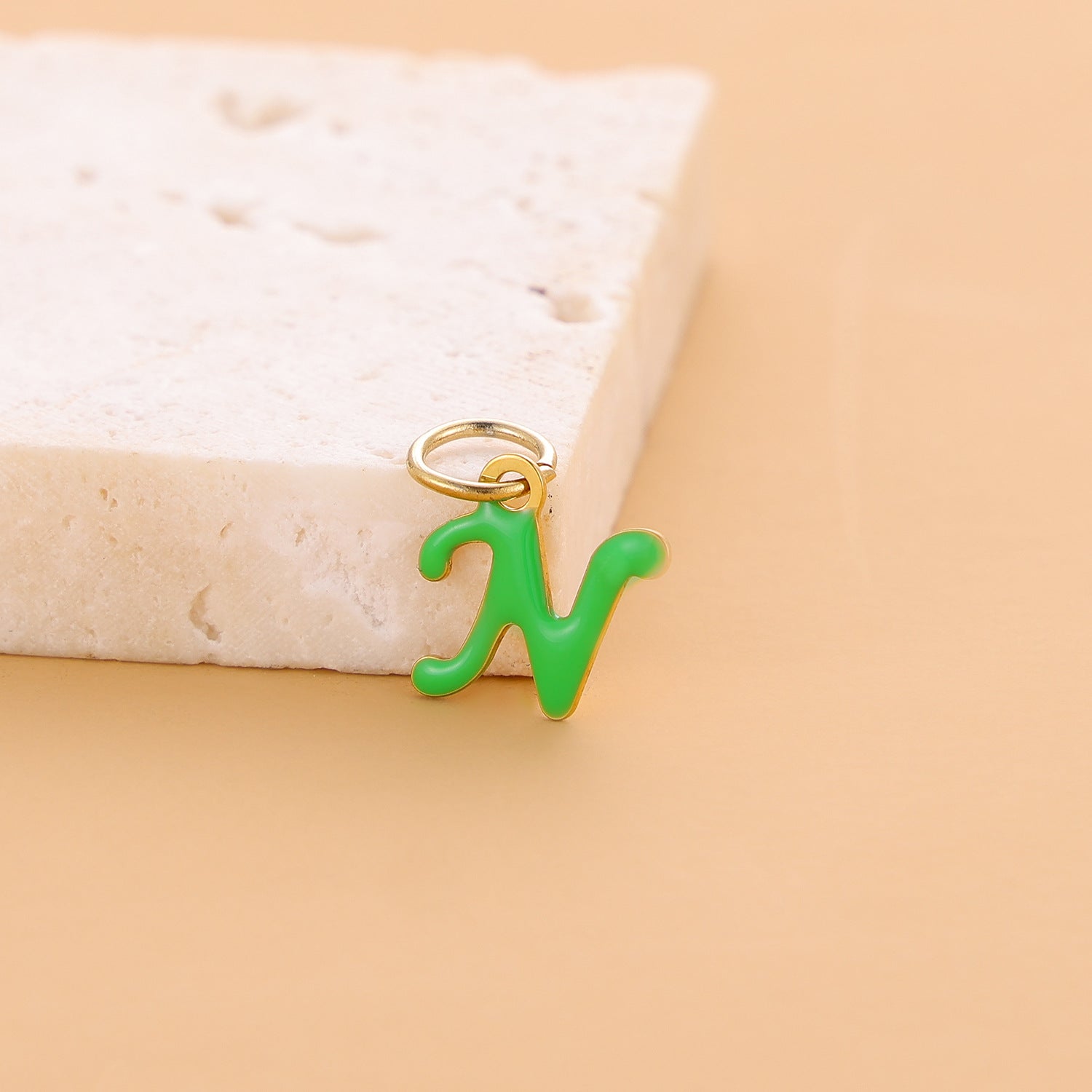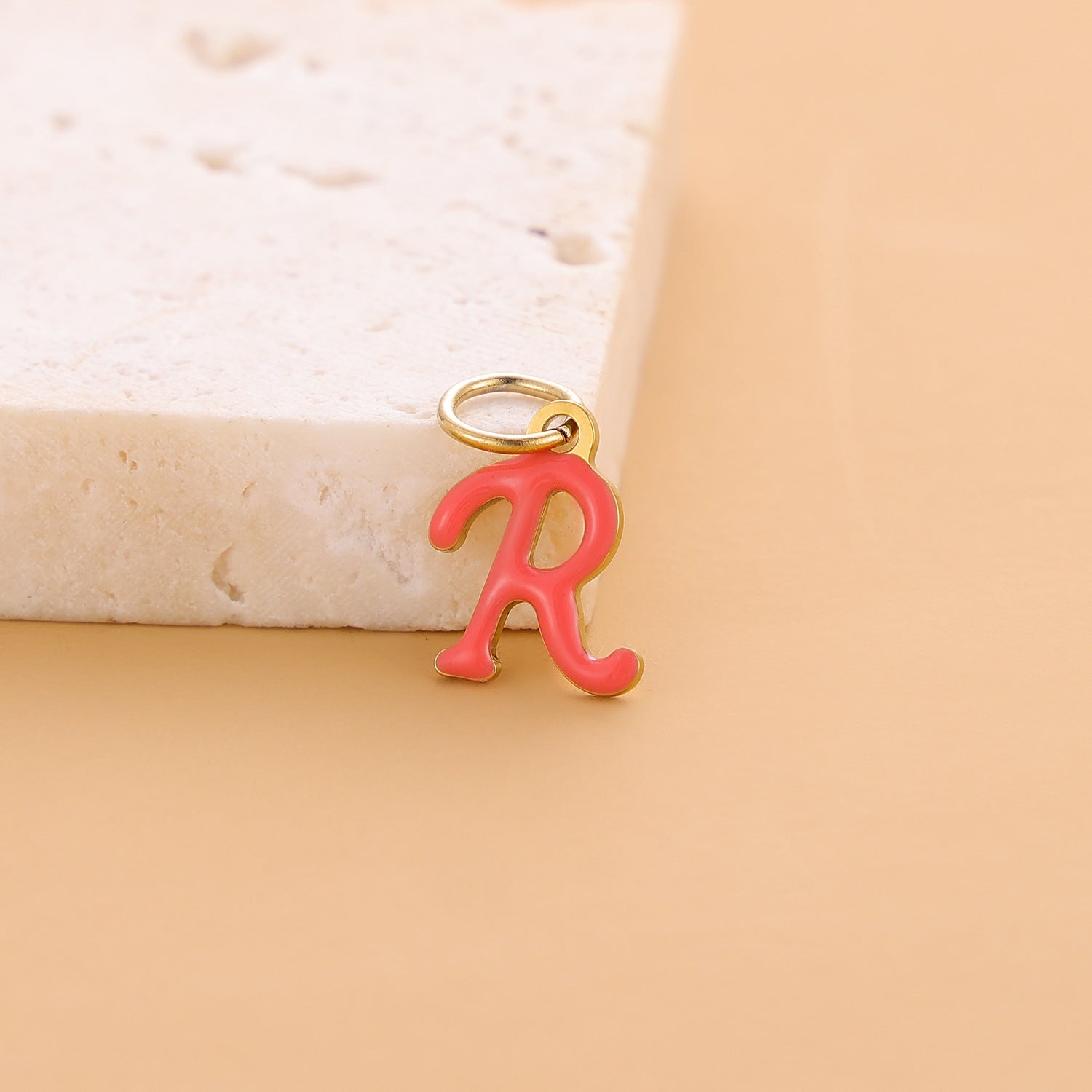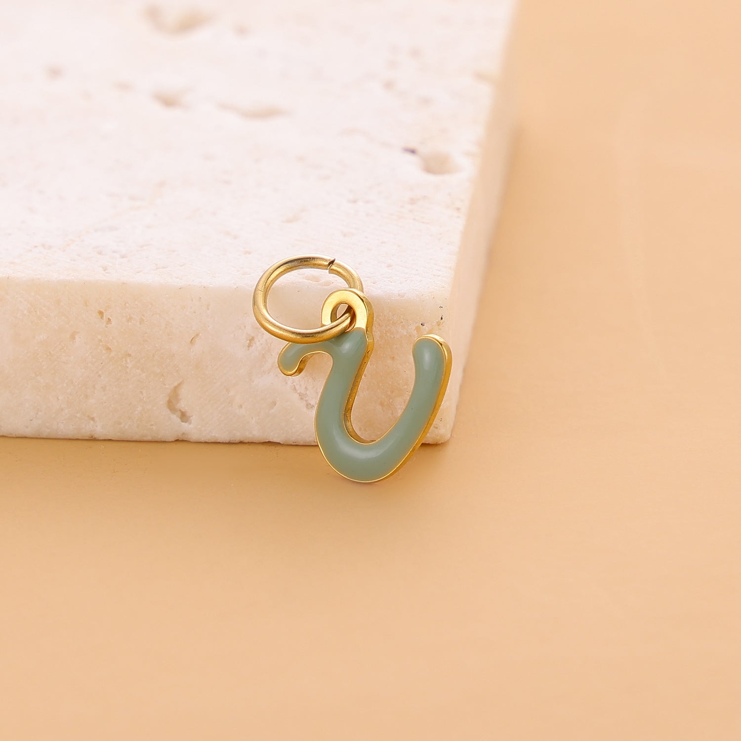 Wholesale Colorful 26 English letter pendant oil drop titanium steel vacuum plating pendant