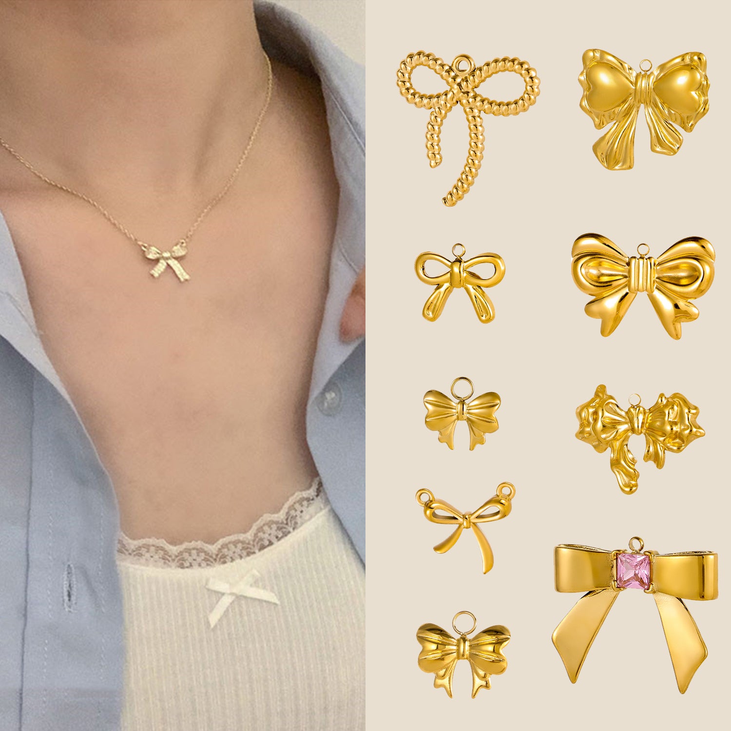 Wholesale Stainless Steel Bow DIY Pendant