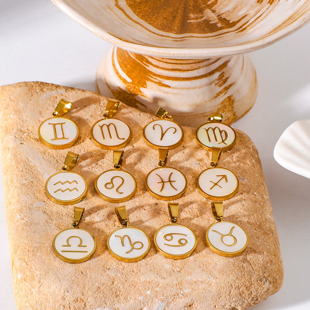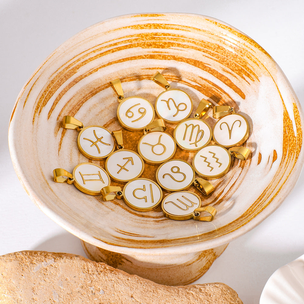 Wholesale twelve constellation pendant inlaid natural white seashells stainless steel necklace