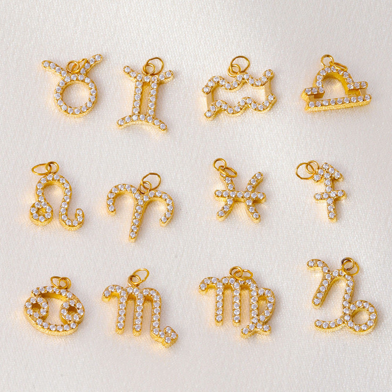 Wholesale Twelve Zodiac DIY stainless steel micro-inlaid diamond pendant