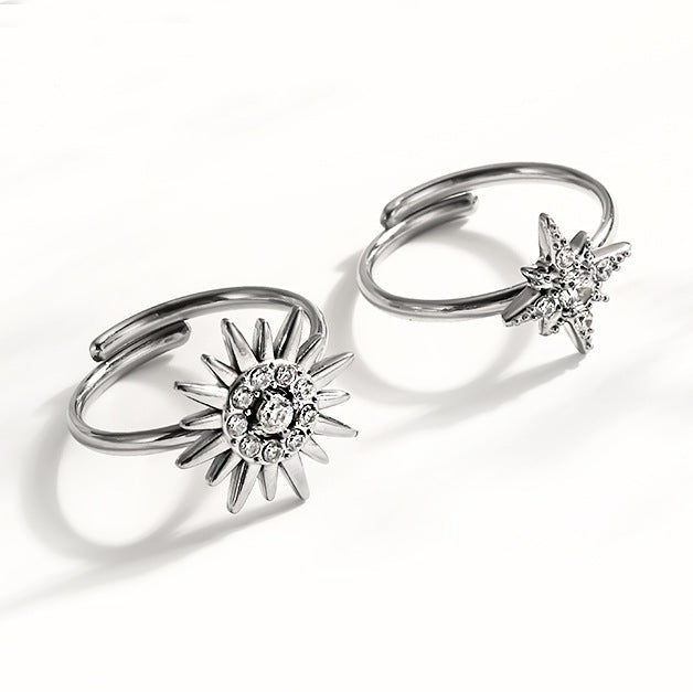 Wholesale Diamond Sunflower Vintage Titanium Steel Star Ring