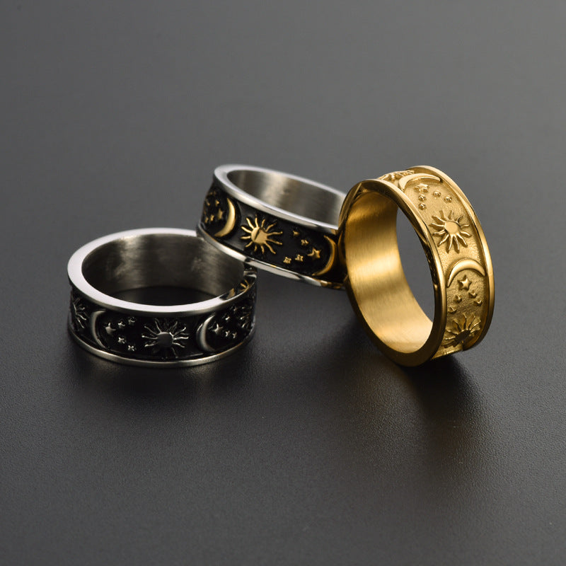 Anello all'ingrosso in acciaio al titanio con anello stella luna e sole