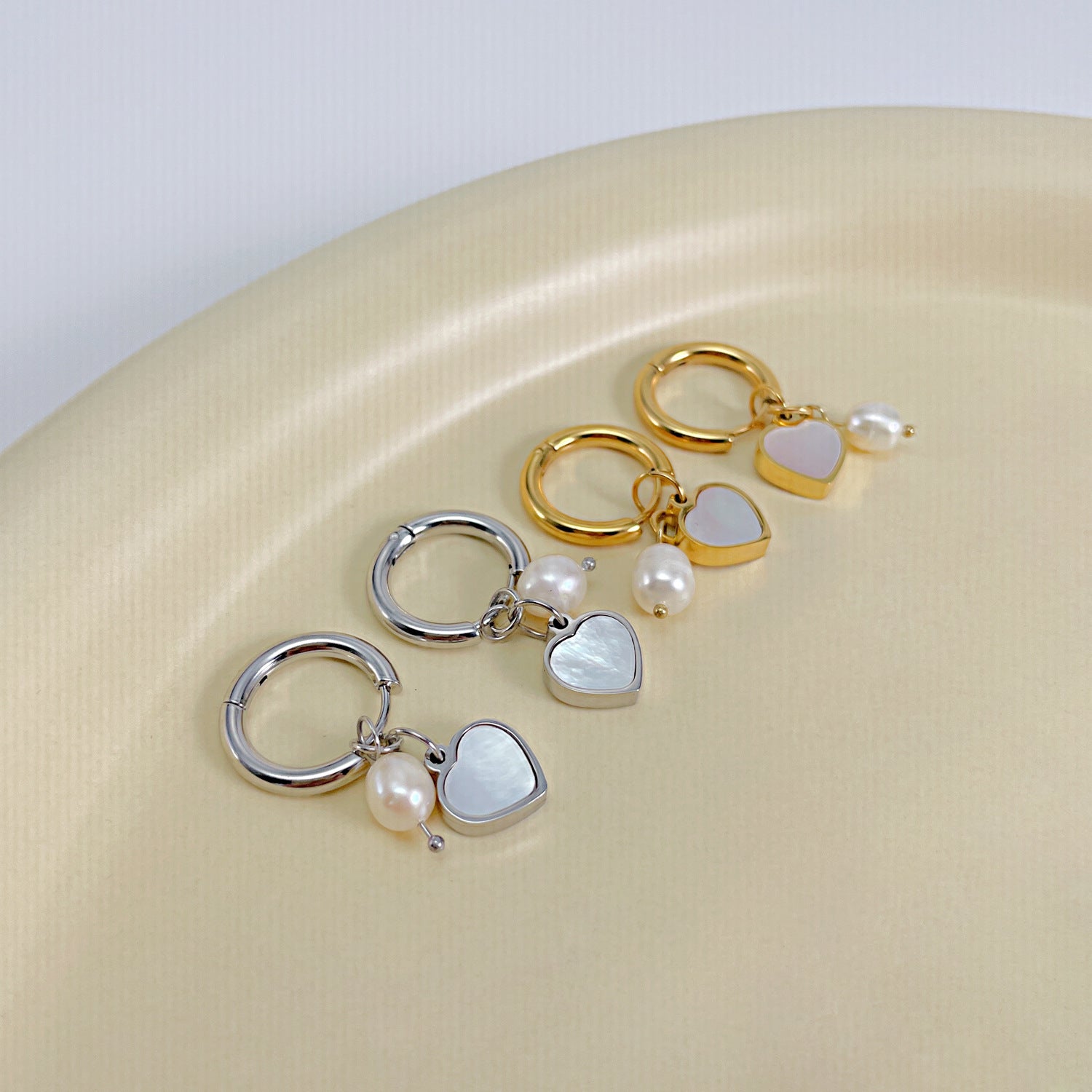 Wholesale Light Luxury Stainless Steel Earrings Baroque Freshwater Pearl Love Elegant Earrings