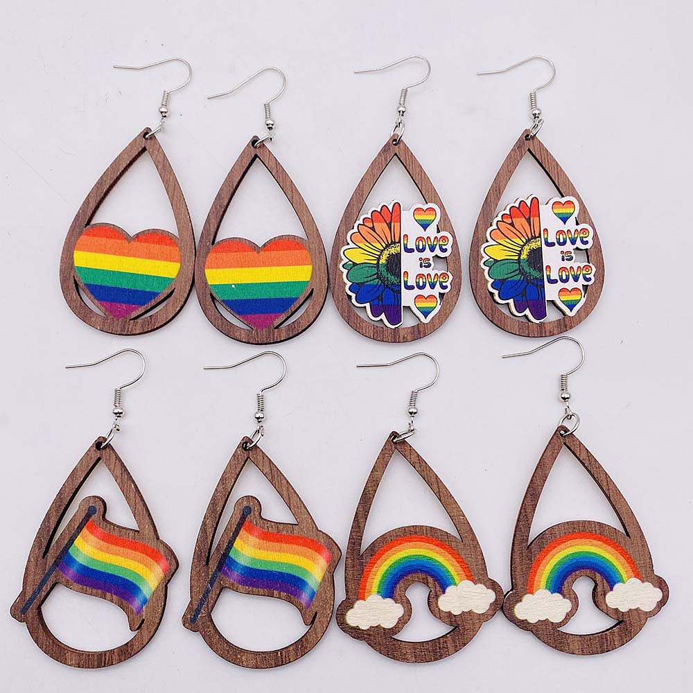 Wholesale Wooden Earrings Rainbow Love Valentine's Day Geometric Earrings