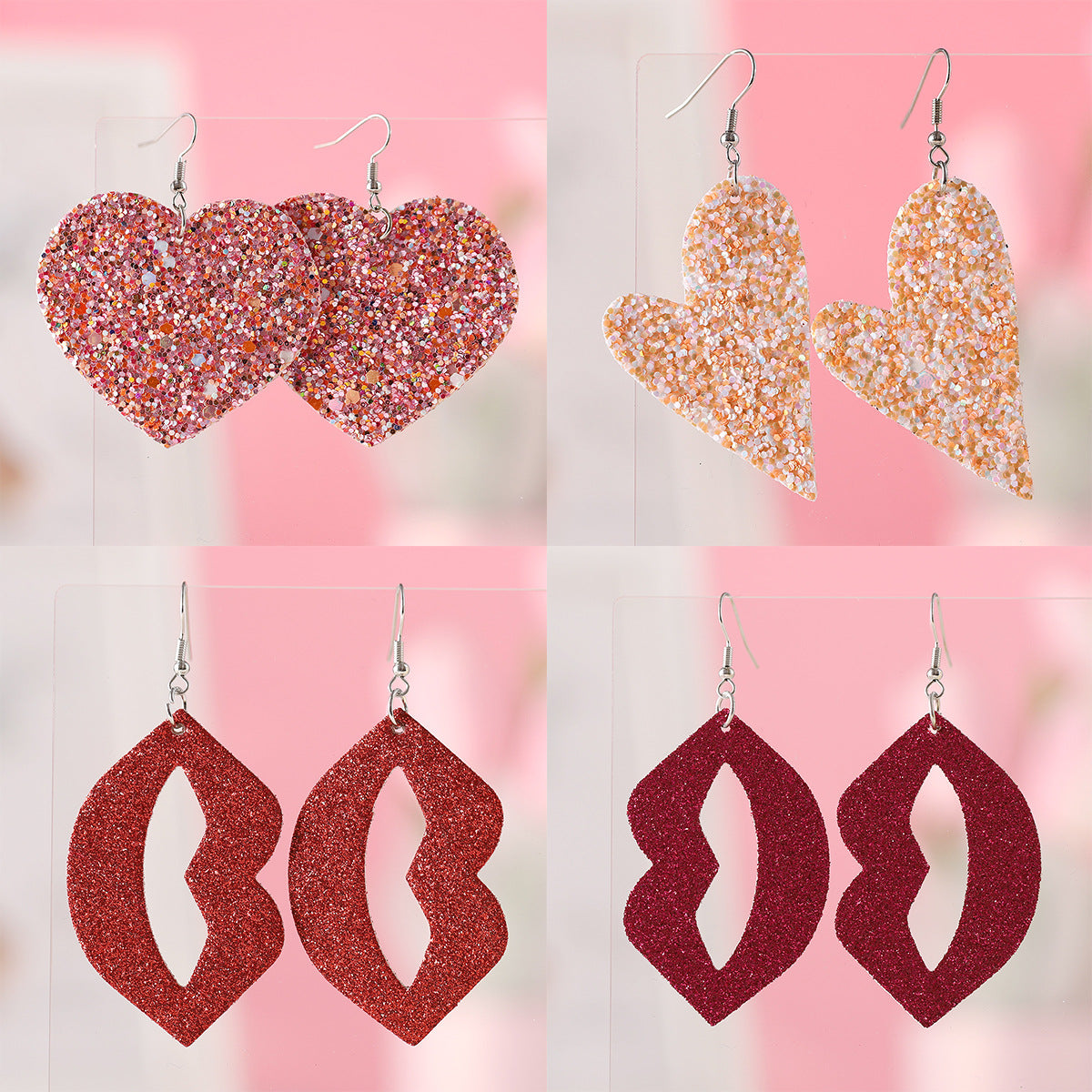 Wholesale Valentine's Day Blingbling Sequins Peach Heart Love Sexy Red Lips Earrings