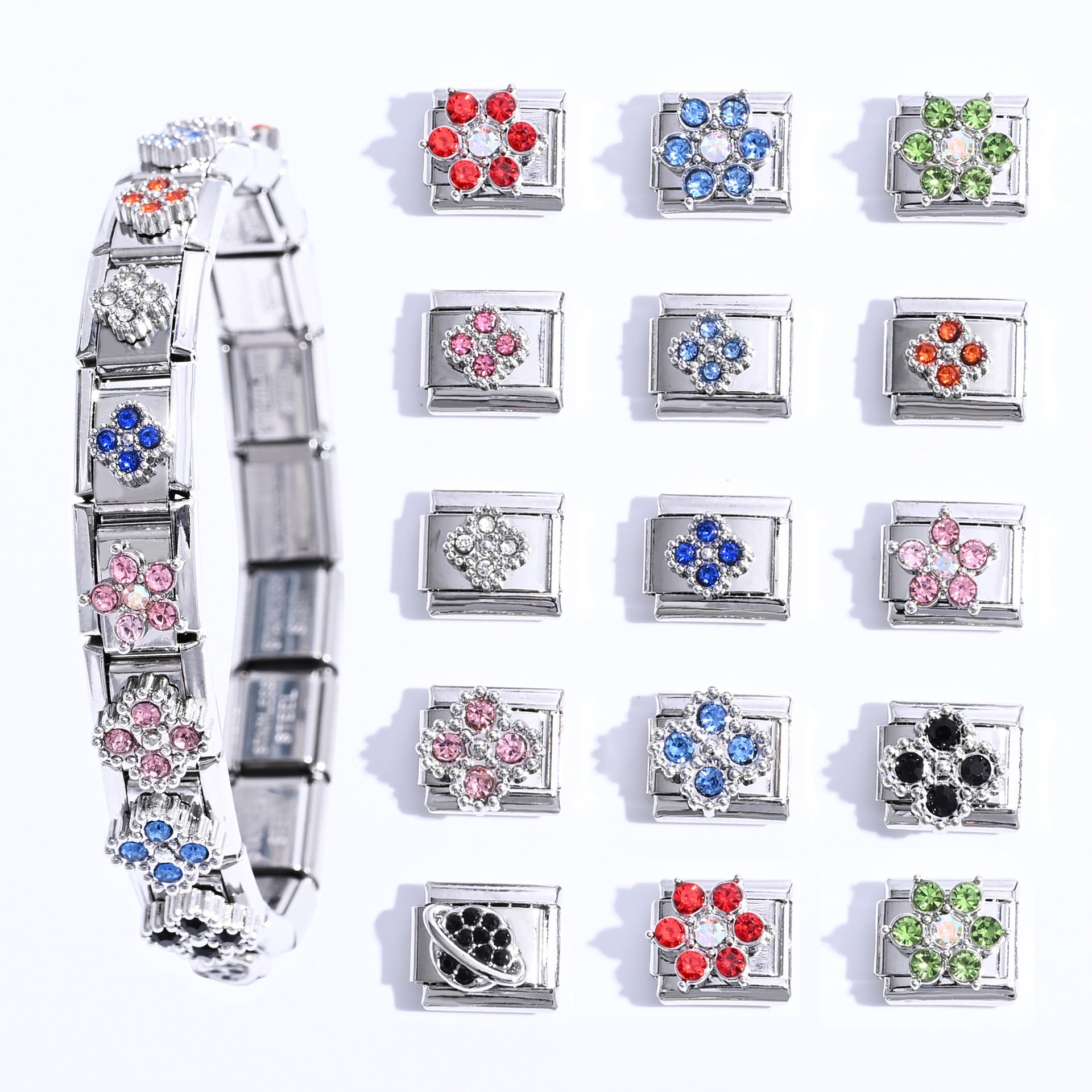 Wholesale 9mm Italian Charm Starter Bracelets DIY Flower Series Stainless Steel Composable Bracelet