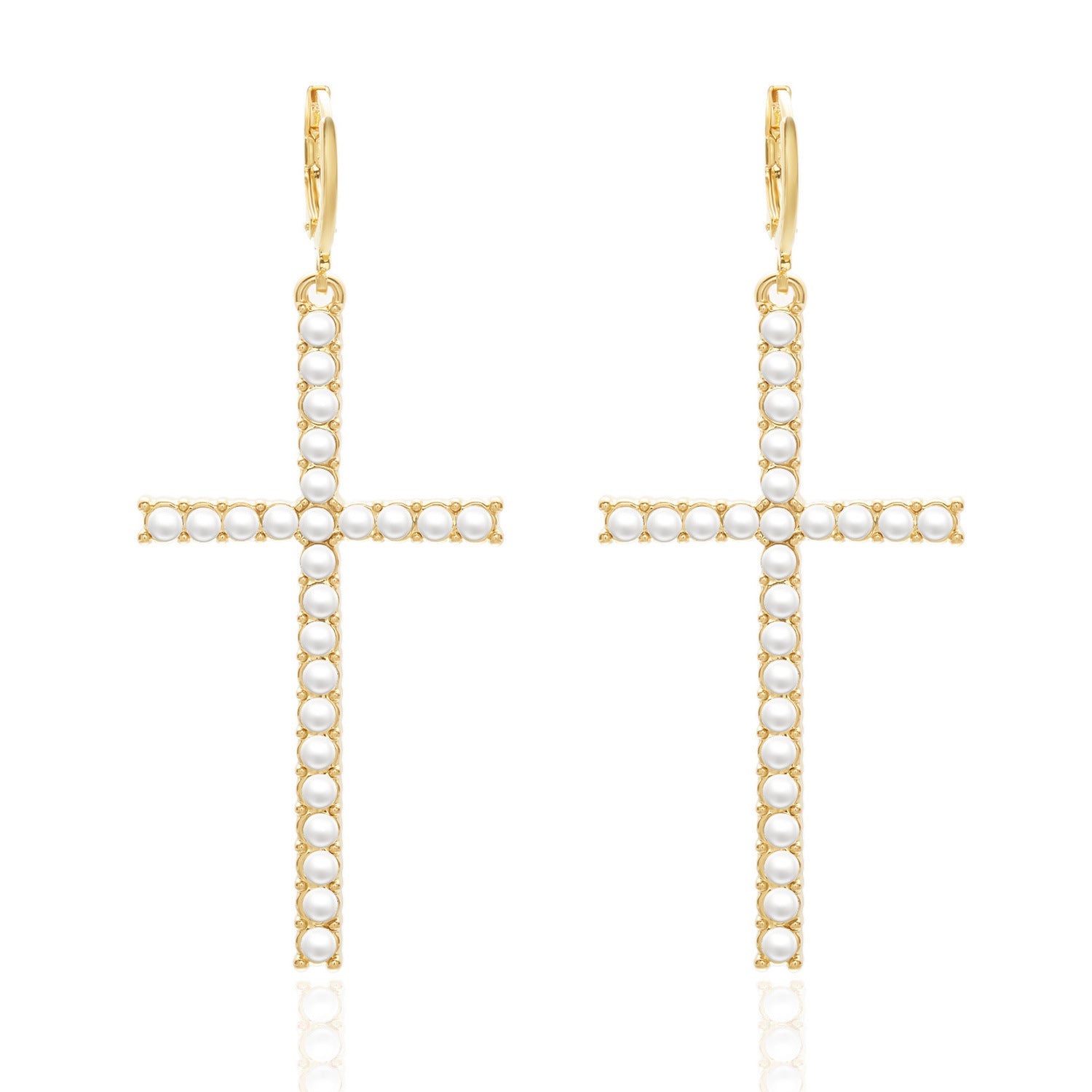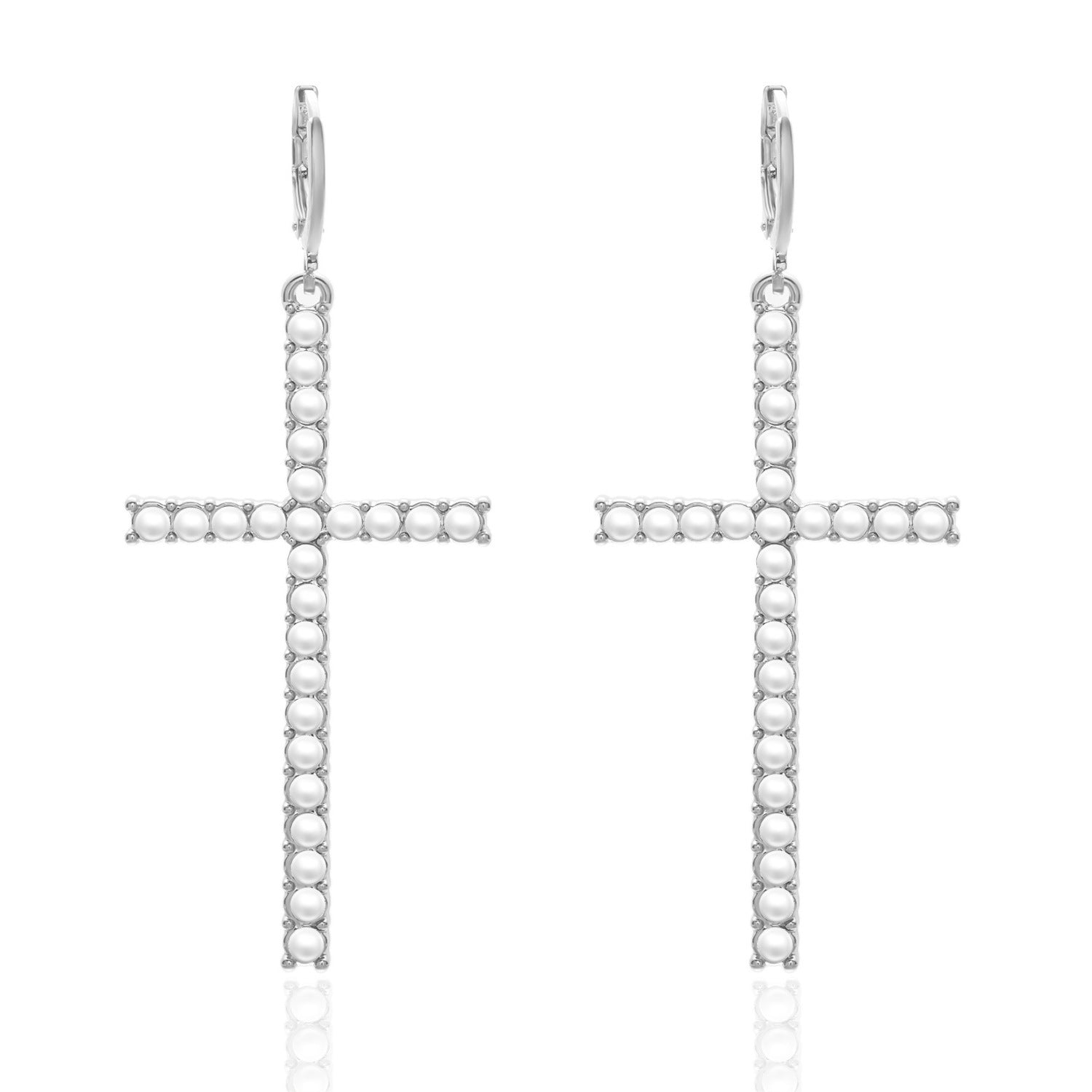 Wholesale cross diamond earrings asymmetric rhinestone pearl earrings