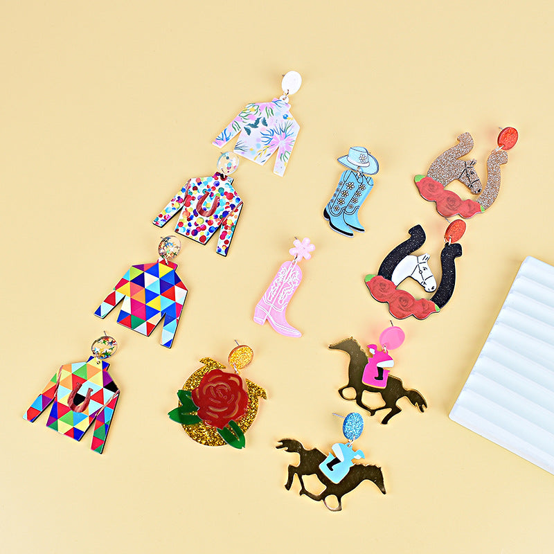 Wholesale Acrylic Horse Racing Festival Earrings Western Cowboy Hat Boots Earrings